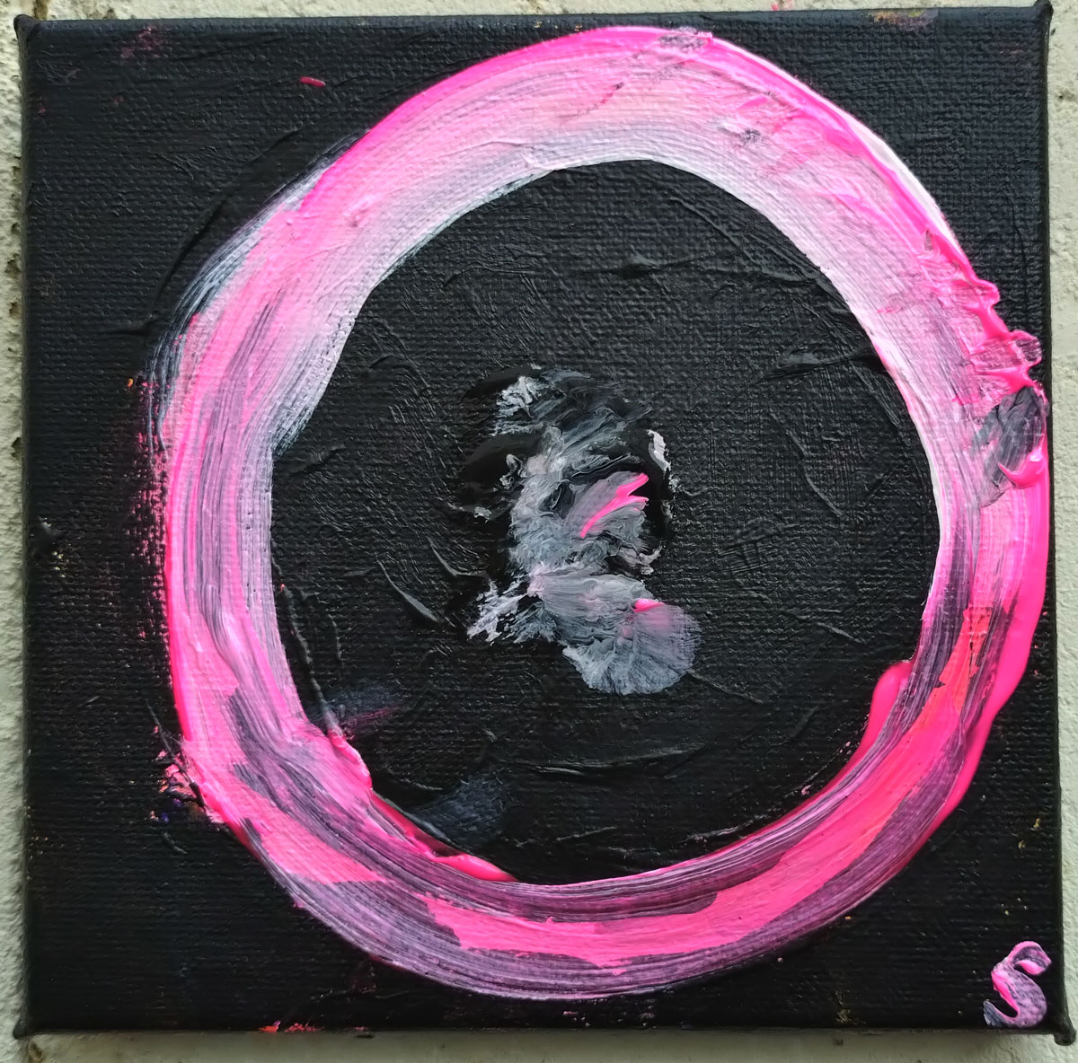 Windett approaches the process of painting from a place of discovery, allowing each work to unfurl without prior planning. In some his distinctive triptych format emerges – the canvas being vertically divided into three sections, perhaps alluding to doorways and entrances, while recurring motifs appear in the margins: numbers, as well as spherical shapes that evoke suns, moons, holes or eyes. Others feature smaller sculptural reliefs that take on the appearance of windows or vignettes. These smaller works each begin with a wooden tray-like border containing compositions suggestive of landscapes; night scenes with moons and stars, and of course the backs of horseboxes. Here the surface is interrupted with collaged elements, cut-outs of linen canvas, painted coils of twine and other studio detritus. These works have an existential quality to them, understood as portals, they allow a space for contemplation, where one can be on the inside projecting one’s desires outwards, or stood on the outside looking in.