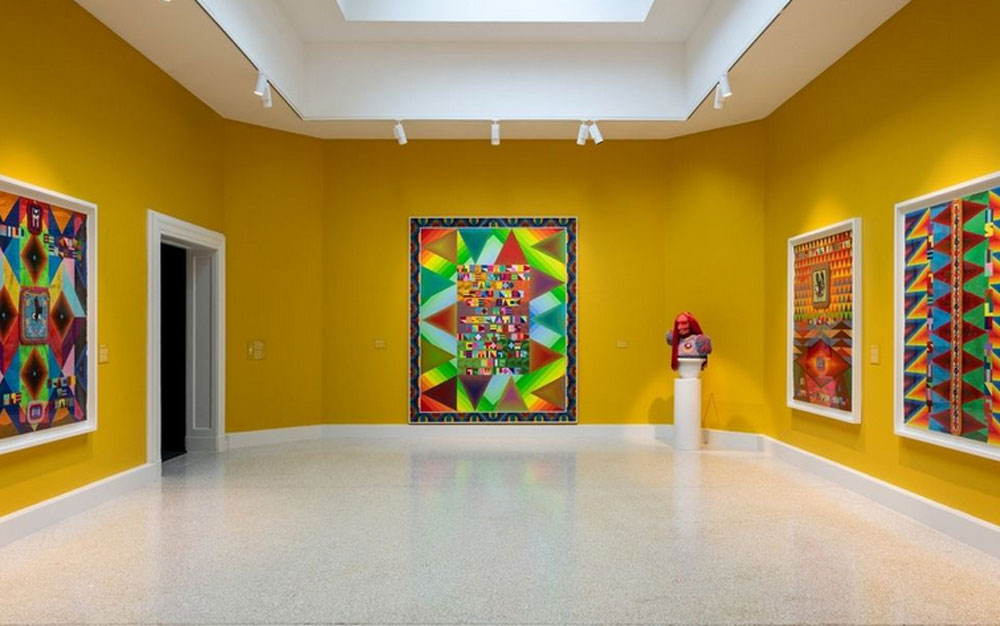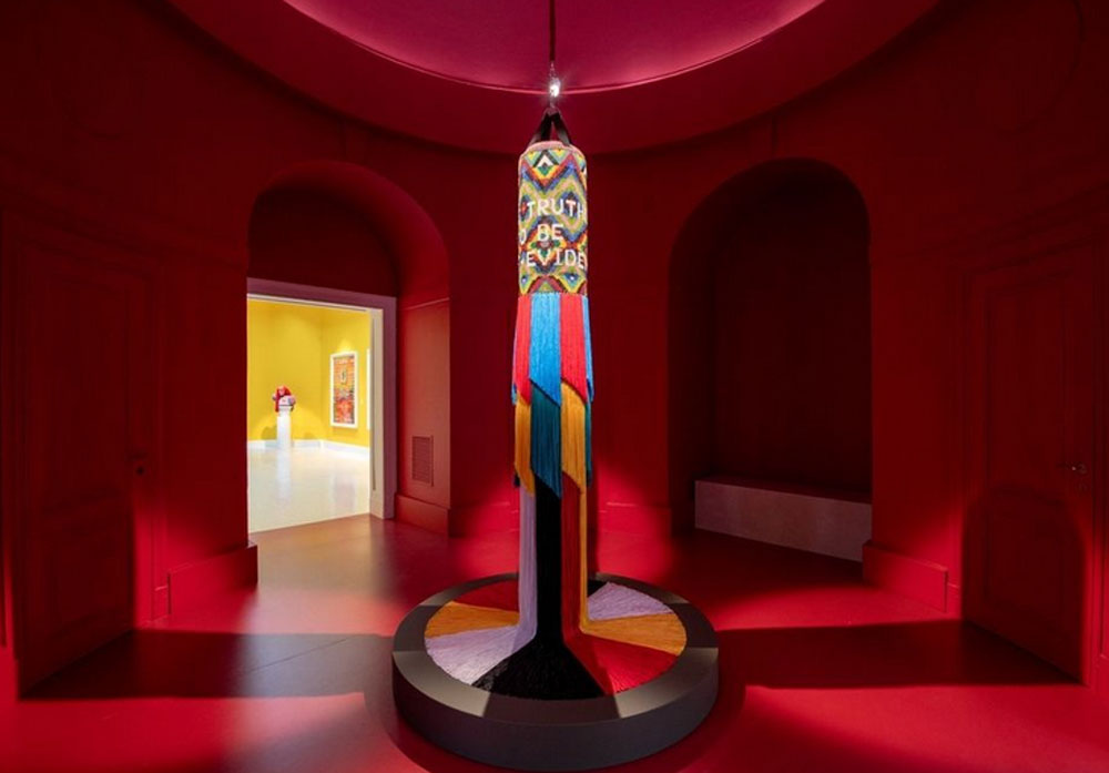 “Jeffrey Gibson: ‘the space in which to place me’ opens on Saturday 20th April at the Venice Biennale – The United States Pavilion at the 60th International Art Exhibition of La Biennale di Venezia presents a multidisciplinary exhibition by Jeffrey Gibson. ‘the space in which to place me’, engages concepts that have shaped the artist’s practice over his 20-year career. Bringing together sculpture, multimedia paintings, paintings on paper, and video, the exhibition explores the dimensions of collective and individual identity and the forces that shape its perception across time.