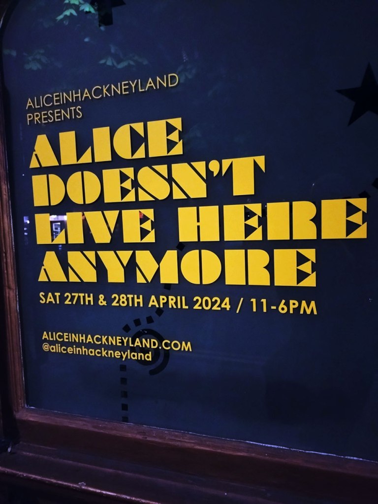 3: Alice in Hackneyland – Alice Doesn’t Live Here Anymore – on Saturday 27th and 28th April 2024 – Alice Doesn’t Live Here Anymore is said to be “an immersive exploration of memory through objects and spaces set within a Victorian house that was once formerly a pub until its closure in 1983”. Spied this one a couple of nights ago while walking home from a gig, a Jesus and the Zealots gig if you must know, just tracked down some information, Alice isn’t big on communication with her fellow Hackney-based artists, we have tried a number of times – “It is an exhibition of installations, performances and artworks in which visitors are invited to reflect on the bonds we form with people, belongings, physical spaces and environments. It aims to recreate and re-establish these bonds through our connections to the familiar and the act of imagining and reimagining narratives past and present”.