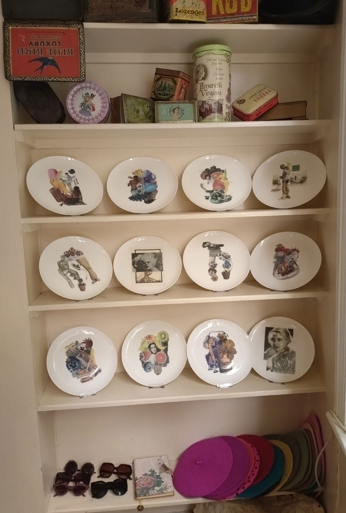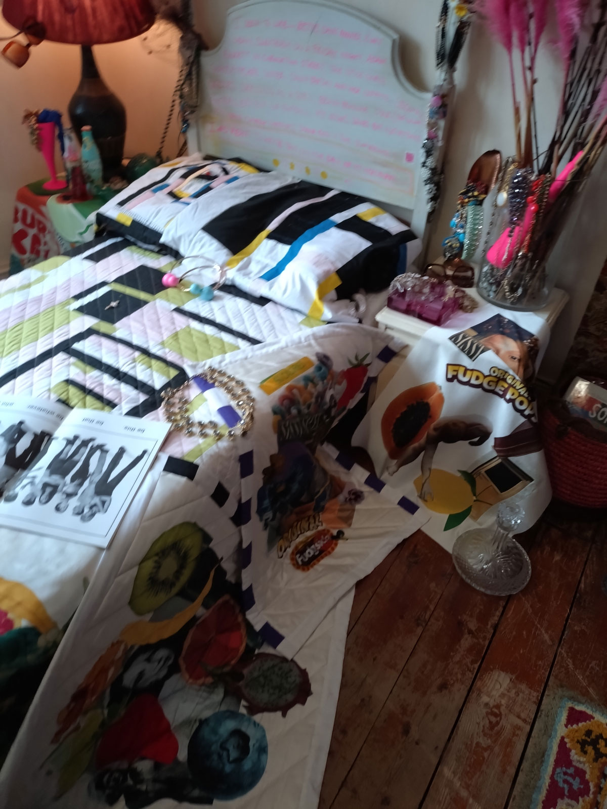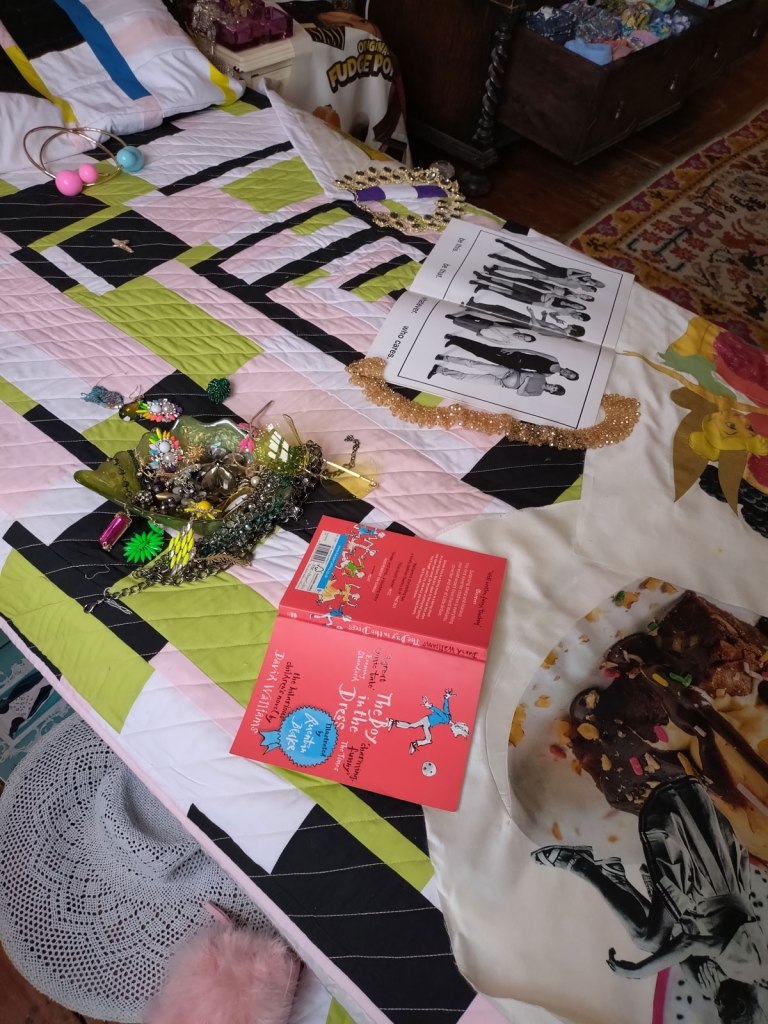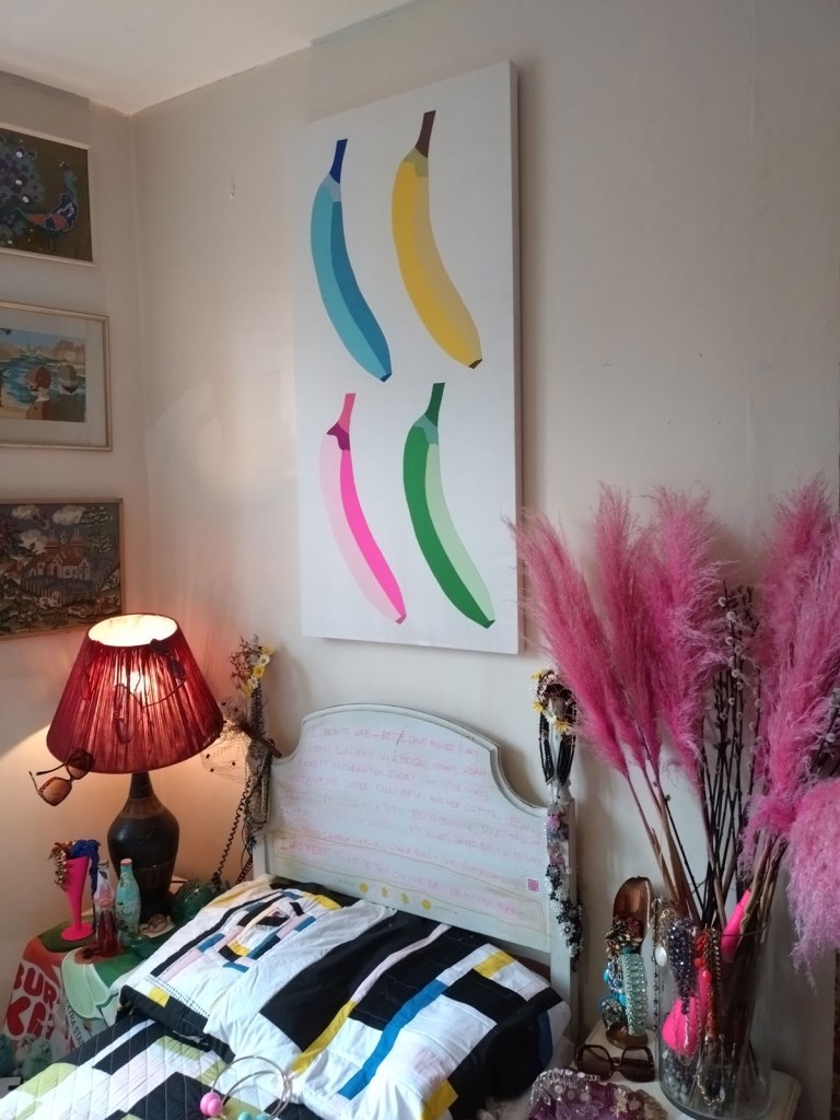“This exhibition has been curated by artists from the Alice in Hackneyland collective. The collective originated here in Goldsmith Row in 2019, but none of its current members reside here any more”. Goldsmith’s Row is at the Shoreditch/Hackney Road end of Broadway Market, not far from Hackney City Farm. I thought it was brilliant, I thought it was exciting, I loved being in the rooms and the way they’ve used the space, the stories hinted at, the objects, the blurred lines, the pink paint, I wonder who used to room on the second floor and if she left a forwarding address. Those CD spines were to be admired, the books casually left, the bed, the bath, the clothes on the floor, the hats, the pink, loved the whole thing, the one big whole, it was a throwback, we need more of this, we need our Hackney back… (sw)