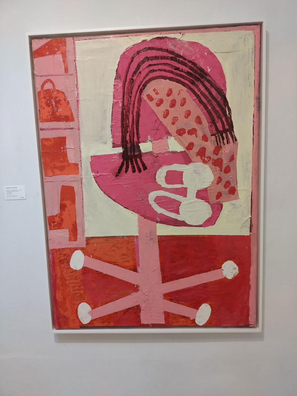 Florence Hutchings, Dressing Room at The Redfern Gallery, Cork Street, London, April 2024 – It does feel almost playful, not throwaway playful, if these pieces are playful then it is most definitely seriously playful, these are serious paintings. Maybe the playfulness is in the colour? The way she deconstructs the line, the shape, the legs of the table? This is an enjoyable show, Florence’s work always is and no, playful and enjoyable suggests something not to be valued, this is a (very) rewarding exhibition, a wonderful process, an impressively rewarding body of work. A highlight of a day spent in many West End galleries and art spaces (brought on by a need to see the Sasha Styles one day video installation at Outernet) a day in search of more, a day when most of what was seen we won’t bother mentioning, we are, as always, very picky as well as scattergun (a well aimed comment offered in terms of these fractured unproofed pages)