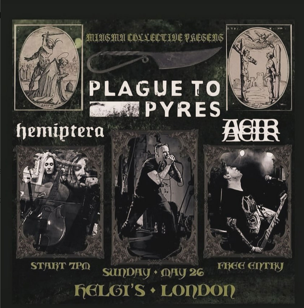 Now this sound good, Hemiptera are a rather hopeful rather raw band from Brighton blending dark moody cello with some doom and and a touch of thrashing punky crust, they play Helgi’s Bar here in East London this coming Sunday May 26th in the middle of a bill with headliners Plague to Pyres and openers Aeir. Right now that Hemiptera demo is beautifully raw, raw is good, a proper demo, we like proper, old school, it is where we started. There’s something good kicking off here, sounds like it might be worth jumping on this ride and seeing where it goes….