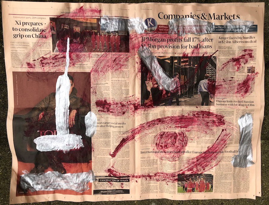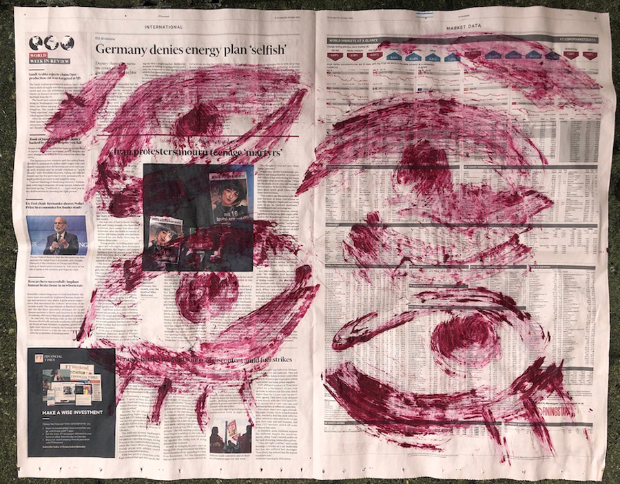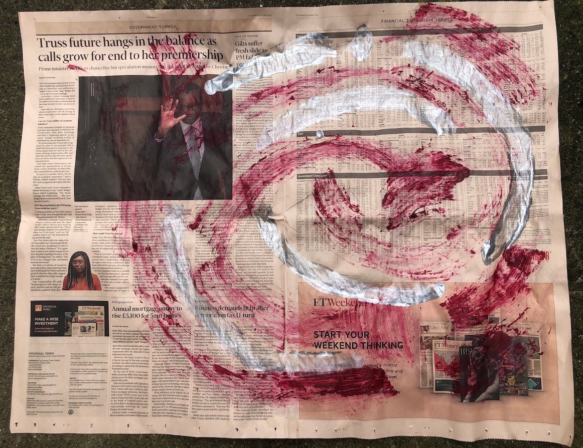 Madeleine Strindberg (born 1955) is a German-born painter, a long time London-based artist, winner of the 1998 Jerwood Painting Prize, she graduated from the Byam Shaw School of Art and Royal College of Art in 1985 with a master’s degree in painting. Winner of various awards, she was the Artist in Residence at the National Gallery in 1989, that same year she also won the GLC Peace Prize and In 1996, she was awarded the Abbey Award in Painting by the British School at Rome. Madeleine was one of the artists shortlisted for the John Moore’s Painting Prize in 1997, In 2000 she was once again on the shortlist for the Charles Wollaston Award. “Preferring to be called an artist as opposed to a painter, Strindberg has worked with various media, three-dimensional objects, photography and video, as well as the written word to convey her subject matter”. It is painting we know her for and painting that has dominated her work in more recent years, it was always her most frequent medium and whether it be on canvas on newspapers (that have maybe annoyed her or are reporting something that has annoyed her), it is always rather relevant, always rather exciting.