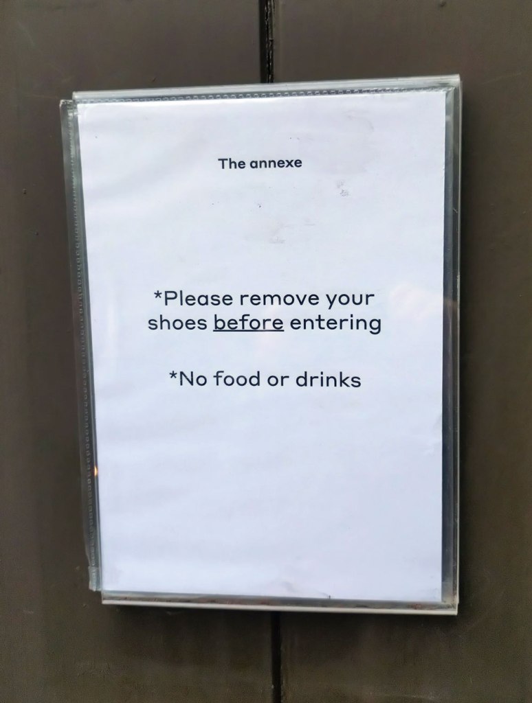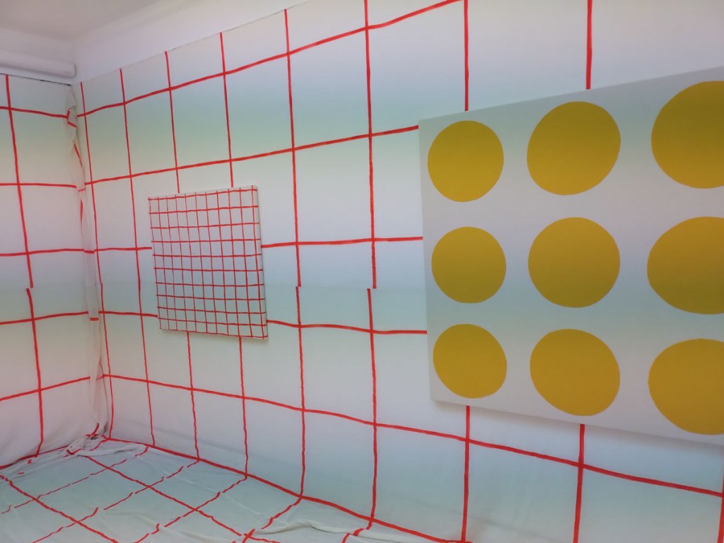 In the Annexe (the smaller detached room often occupied by a different artist) Adelaide Cioni’s meditation moves into abstraction and colour, “here too trying to strip down everything as much as possible. It is an immersive environment that puts us directly inside the work, barefooted. This is an open invitation to abandon all narrative efforts and simply perceive primary colour and shape” – I did remove my shoes, I did go in, I did have it all to myself, it wasn’t quite a feeling of being inside the art and maybe the colour took something away? Or was it the form? Do like the idea, kind of liked the feeling but the actual lines, circles, the whatever, welll let me politely say it was the big room that did it for me, the art it the mail room is highly recommended but you really aren’t going to know why by just looking at it on line and not being at oen with it in the big room…