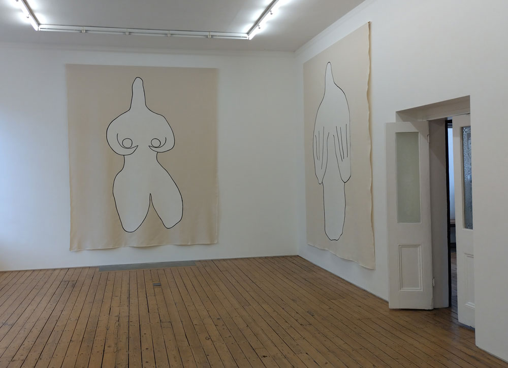 “True Form interrogates what goes on between us and the images we create or surround ourselves with. The paintings come from life drawings of statuettes that I saw in different archaeological museums – in London, in Sicily, in Turin, in Bologna. I made these drawings as I was standing in front of the statuettes, and then I translated them in even simpler lines. A translation of a translation, stripped down to the bare minimum”.