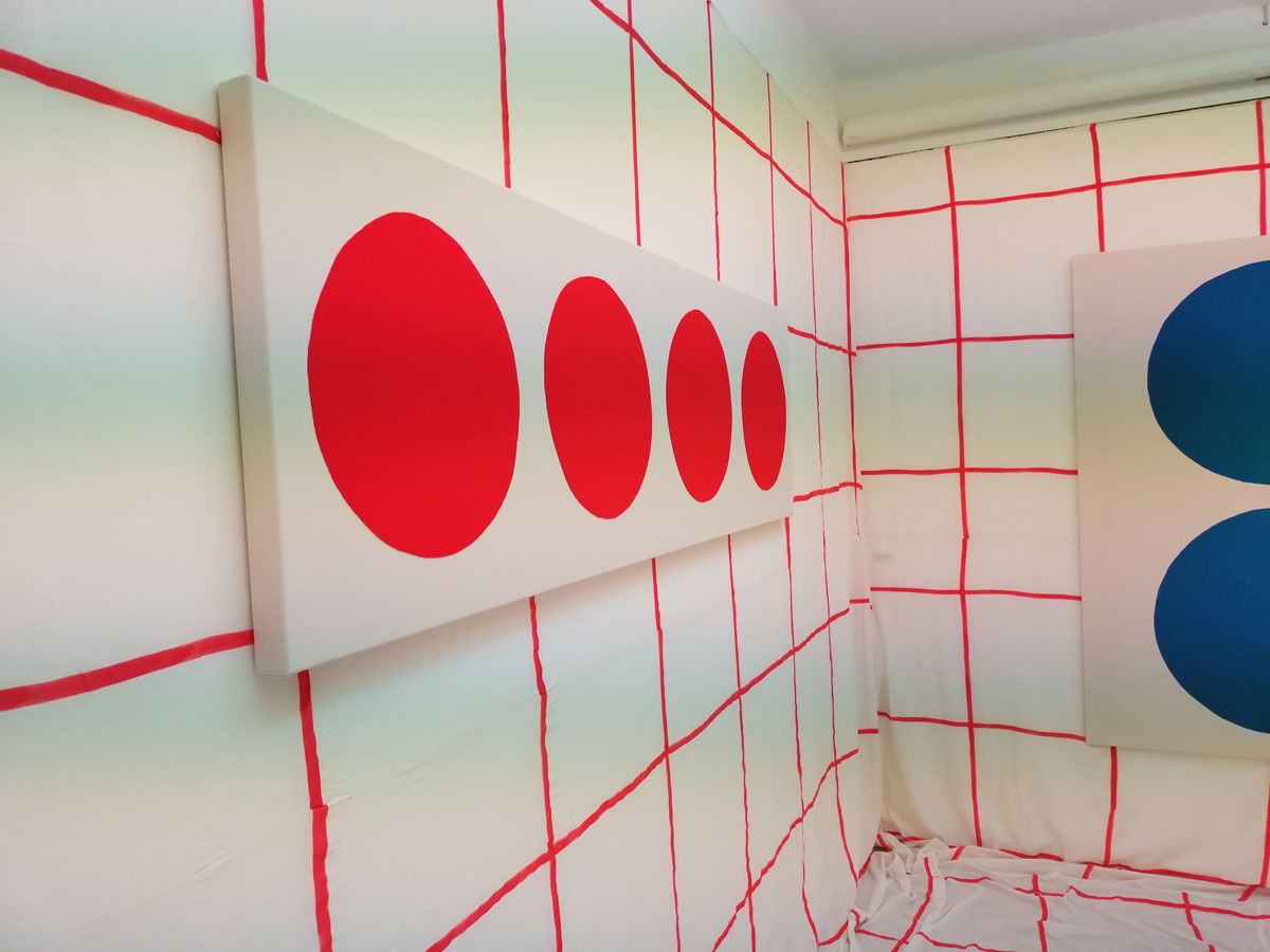 In the Annexe (the smaller detached room often occupied by a different artist) Adelaide Cioni’s meditation moves into abstraction and colour, “here too trying to strip down everything as much as possible. It is an immersive environment that puts us directly inside the work, barefooted. This is an open invitation to abandon all narrative efforts and simply perceive primary colour and shape” – I did remove my shoes, I did go in, I did have it all to myself, it wasn’t quite a feeling of being inside the art and maybe the colour took something away? Or was it the form? Do like the idea, kind of liked the feeling but the actual lines, circles, the whatever, welll let me politely say it was the big room that did it for me, the art it the mail room is highly recommended but you really aren’t going to know why by just looking at it on line and not being at oen with it in the big room…