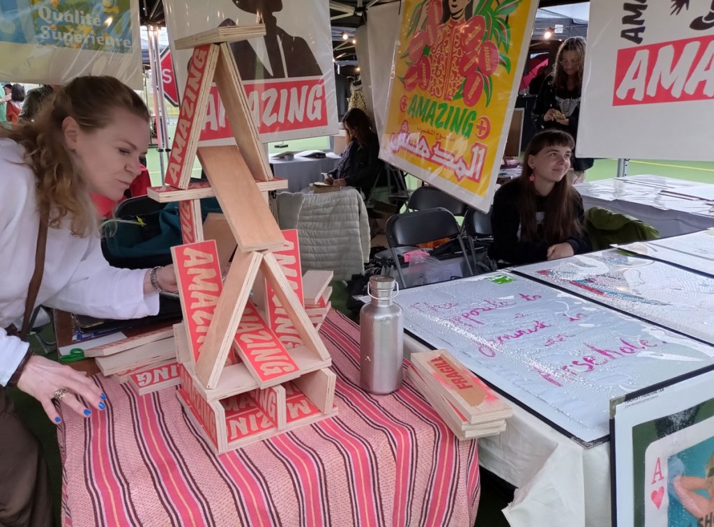 We’re at a small scale version of the Art Car Boot fair, nowhere near as big a the main event that this year happens in early September in Kings Cross, the list of invited artists reads (in alphabetical order) like this: Camille Phoenix, Charlie Evarist-Boyce, Christian Furr, Christine Binnie, Daisy Gammon, Emma Harvey, Flying Leaps, Grow Up with Billy The Kid, Julia Maddison, Jayne Right, Juno Calypso, Keira Rathbone, Marie Brenneis, Misha Milovanovich, Mizuki Doura, Oli Fowler, Pure Evil, Rachel Megawhat, Rankin, Sean Worrall, Tatty Devine, The Misfortune Teller as well as the aforementioned LowLife DJs Frank Broughton and Sarah Tonin. The event is part of something called the White City Summer Series, we’re almost under the Westway on a newly built basketball court on what is right now little more that a building site where the new Imperial College campus is rising – actually it is rather confusing, where the hell is it actually happening? There’s cement mixers everywhere, we’re somewhere near where the White City Stadium once was, there’s no sign of a sign, there’s people getting lost and giving up the pouring rain but those of us who have made it want to dance, and well it is just too wet for the art and Sarah Tonin is spinning some fine fine (fine) New York Citi Peech Boys and life for this moment, for just this night, just this victory, is indeed something special and well this is the thing about the Art Car Boot Fair, it is about the moment.