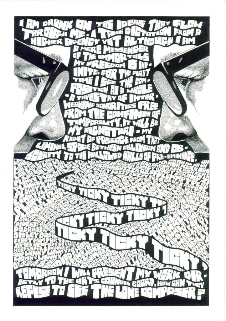4: James Hesford, The Lone Composer at The Horse Hospital – 11th July until 1st Aug 2024 – “An exhibition of compositions and graphic works by composer, artist and writer James Hesford”, go watch the video, that will tell you more than we can – “The Horse Hospital and Raft welcome you to the world of The Lone Composer, the first retrospective of composer, artist, and writer James Hesford. Graphic works, majestic classical and experimental compositions, radio broadcasts, performance, DIY publications and novels, have all merged, cross-pollinated and informed one another across the many years of James’ practice, to create a rich, complex, funny, melancholy and kaleidoscopic world within a world, where reality and the imagination intersect to tell of the real struggles and triumphs that constellate The Lone Composer’s journey, an anti-hero for our times”