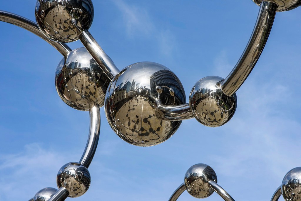 ‘London is a massive metropolis with people of all cultures moving constantly. The spheres symbolise unique personalities while the supporting curvilinear lines allow us to imagine an underpinning social structure.’ — Yayoi Kusama