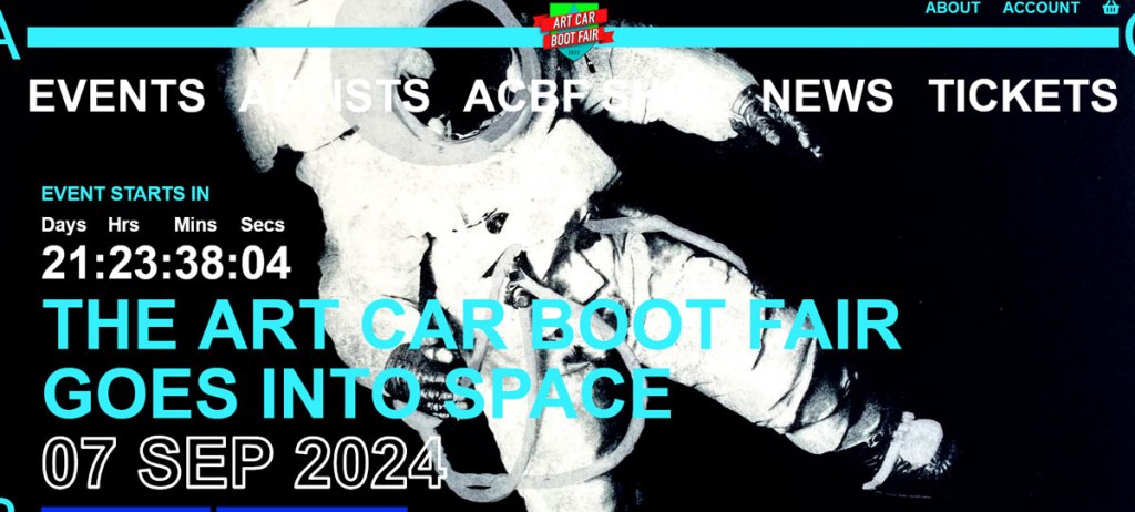 […] It is getting closer, the countdown is really on now, two weeks until The Art Car Boot Fair Goes into Space. The 2024 Art Car Boot Fair happens on Saturday 7th September, the full line up of artists was announced last week – ORGAN PREVIEW: Space is the place, the full line up for this year’s Art Car Boot Fair has been ann… […]