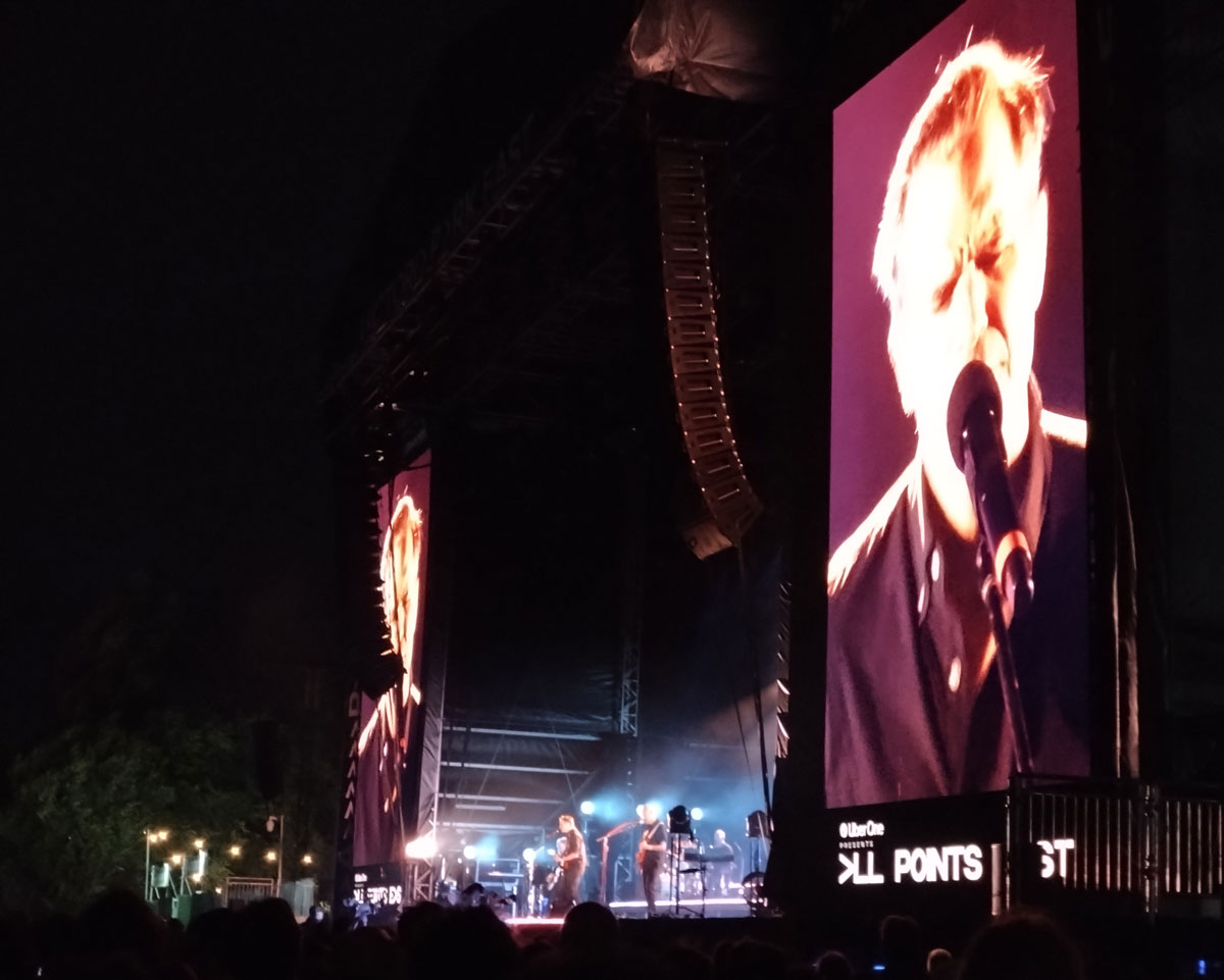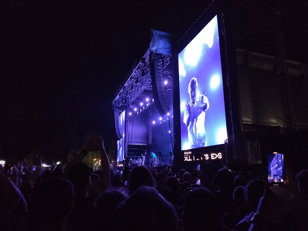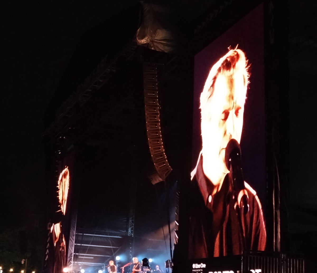 So, almost time for Death Cab For Cutie, often abbreviated to DCFC but we Dream City Film Club fans can’t have that! Death Cab time, everybody put your best suit or dress on and yes Ben Gibbard, all dressed in black for the occasion does have a way with words and songs and so this is the new year rather than almost the end of Summer and the U.S band are telling us of tears in the fabric and looking for the patterns and performing their fourth album in full, 2003’s Transatlanticism, the one that broke them into the mainstream, the one that made them almost household names (and not just a Bonzo Dog song). Death Cab feel just right tonight after the musical overload of a busy day, we weren’t honestly planning to stick around for much of them but the vibe is just so very very nice and the songs are very (very) nice and the weather is still rather nice and the words are easy on the ear and it all feels rather good and the fact that these songs from twenty one years ago clearly mean so so much to so so many people around us makes it feel rather good to be here almost gatecrashing in the middle of it all. Death Cab never really ever touched me, I tried a few times back there, it was all a little too nice, a little bit too American and over here we never really had the money for cars to do it in (it was graveyards and bus shelters) but tonight it is kind of just that, harmlessly nice and to kick any of it would be to kick a puppy. Transatlanticism, with this crowd loving it all, feels like a really good way to almost end a fine fine day
