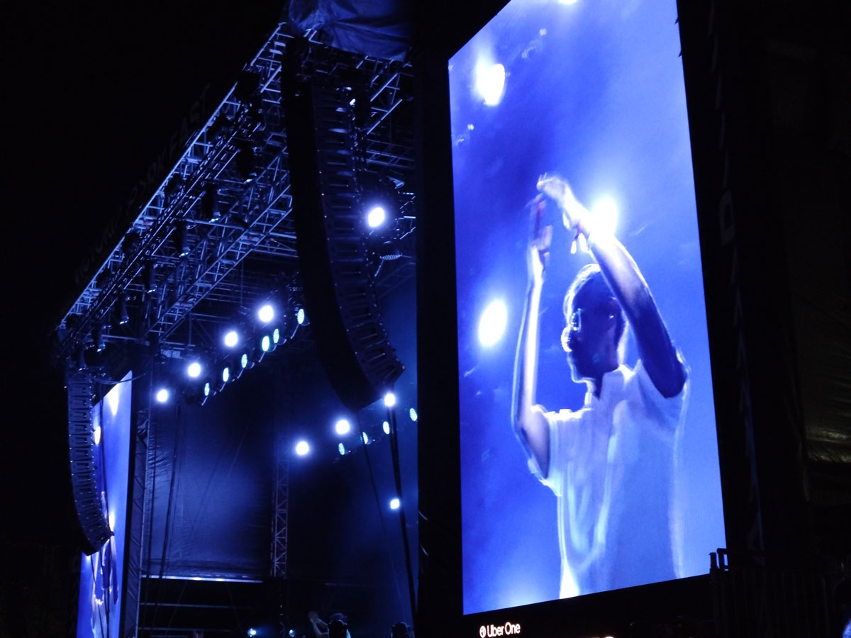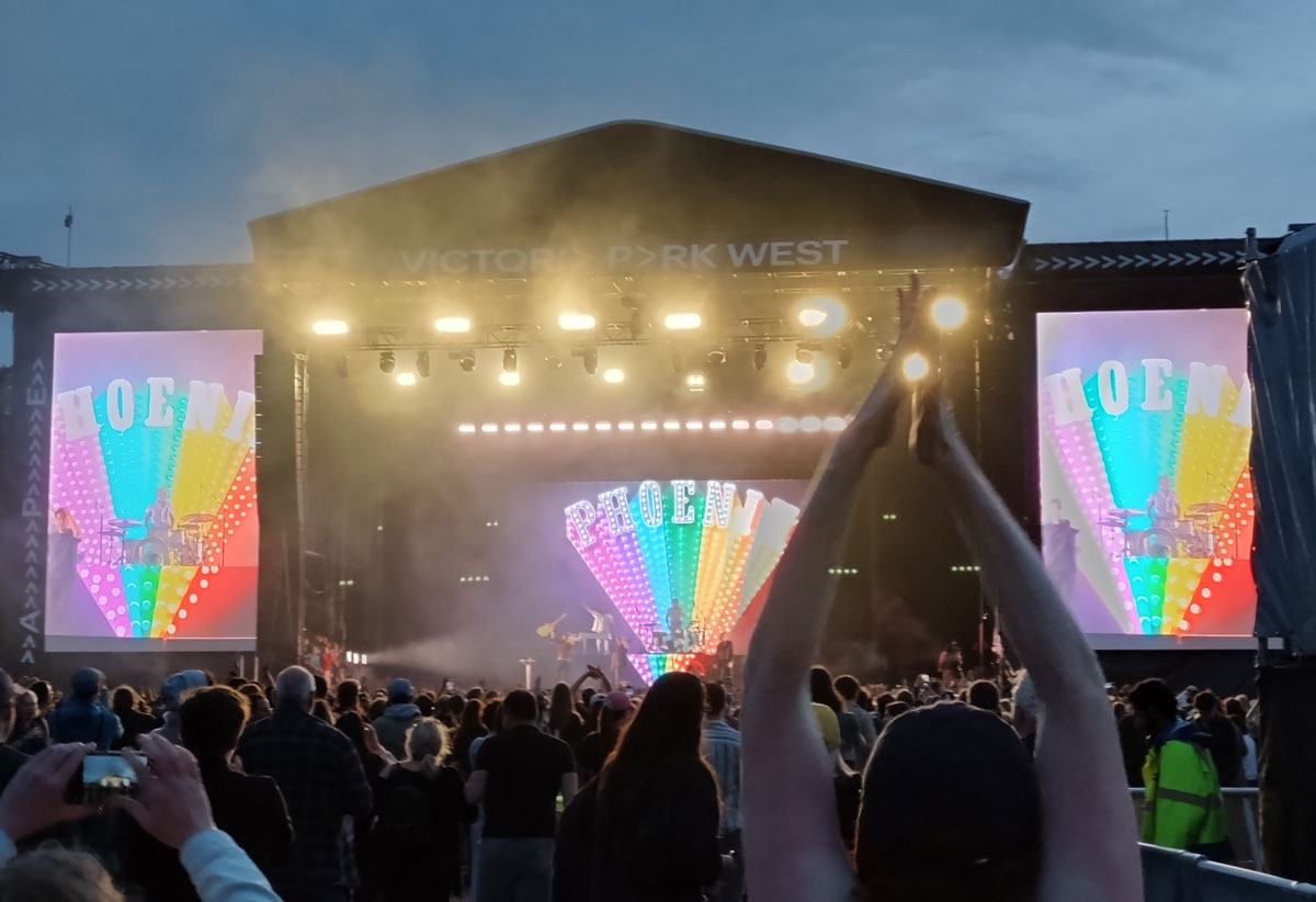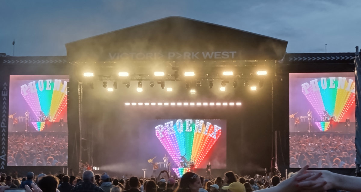Likewise Phoenix look and sound like they’ve gone down well over on the other big stage, the French band aren’t really my thing, way too slick, but hey, they’re going down well with their breezy modern synthy pop rock thing, they and their crowd look to be having a seriously good time, we only really catch the end and a euphoric 1919 and before that Trying to be cool, they don’t sound French do they? They could be from anywhere, they really are (too) slick, synthesised, I guess there’s worse things in life than their brand of harmlessly catchy pop rock, they were worth our fifteen or some minutes with their pop art, they were pleasantly good, they clearly went down a storm, they’re clearly have a great time, last day of a tour high spirits and yes they caused us to miss Spiritual Clamp…