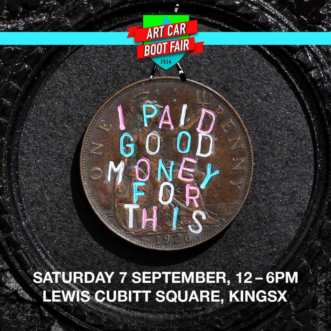 “The Art Car Boot Fair is back at King’s Cross on Saturday 7th September for a day of art, frivolity and serious bargains!” I think we might jusy have mentioned this already but it is an artist-led artist friendly thing (something rare for a so called Art Fair, most of them rather cynically just treat us artists as thier cash cows)