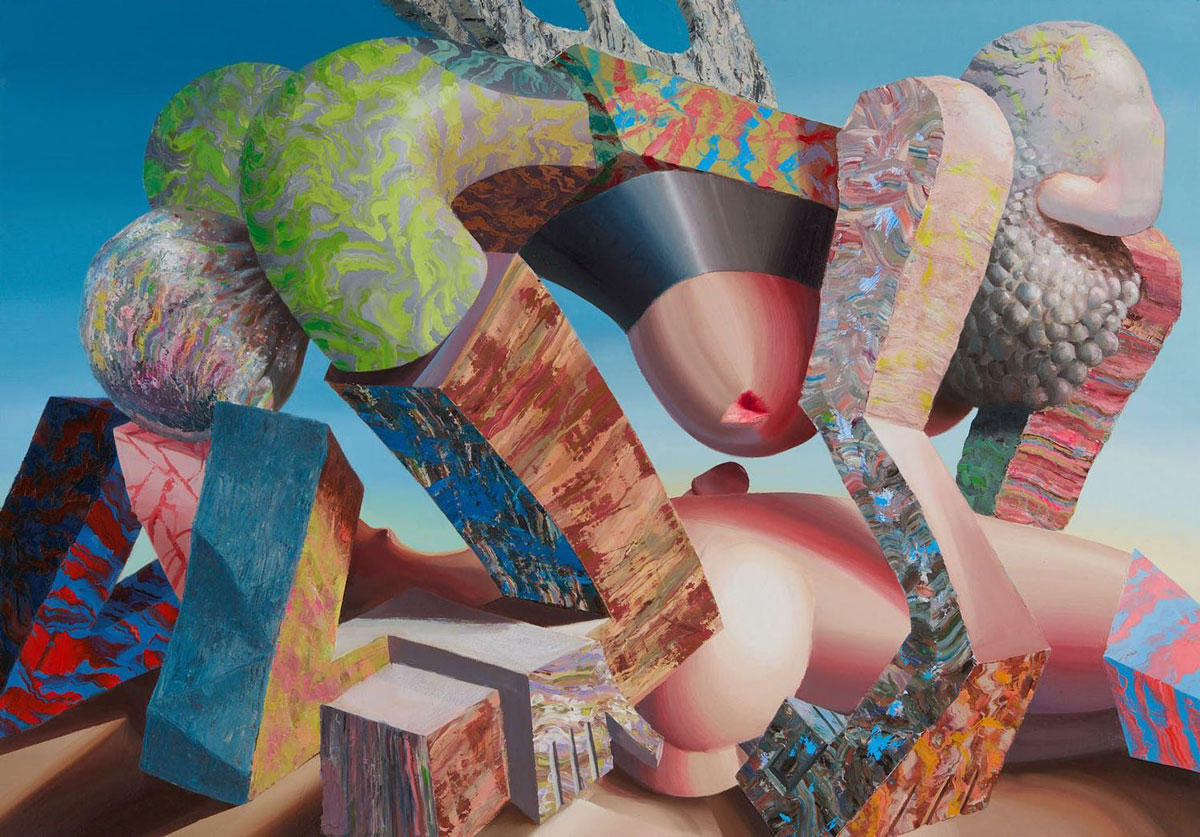 Horacio Quiroz’s latest series, “Cosmic Debris”, evokes the cosmic and divine figures of Greek mythology, where gods and titans embody transformations and fluid states of being. Rocks in Quiroz’s art represent cosmic, geological, and human time, embodying the idea of containing chaos within a volume. This creative flexibility allows him to construct bodies that challenge conventional forms and perceptions, enhancing the perception of the body as both a geological and mythological construct. The rocky formations in his works echo Greek mythology’s tales of creation and transformation, where geological compositions are often tied to divine stories and celestial beings.