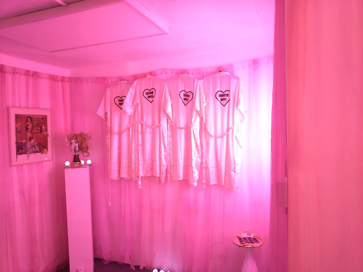 This is brilliant, this is exciting, is this really Studio 1.1? The usually rather robust, rather mescaline rather bleak set of (never that art-friendly) white boxes on East London’s Redchurch Street has been totally and utterly transformed into a far more feminine art space by Sadie Hennessy, a multi-disciplinary artist, “notable for using dark humour in her work”. She trained at Dartington College of Arts and gained her MA from Central St. Martins. She is the former Screen Print Fellow at the Royal Academy and won the Jealous Graduate Art Prize for her MA Show. She is the Chairwoman of the Whitstable ANchorage Klub, hosting the famous Whitstable End of the Pier Show, and the Salon de Ballon”.