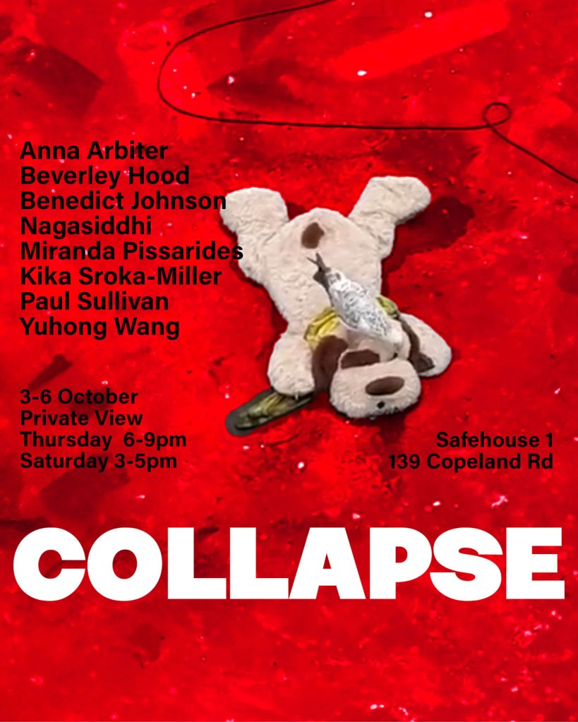 There are two spaces, Peckham Safehouse 1 and 2 are both found at 137 Copeland Road, Peckham, London SE15 3SN. No idea if anything is happening in Safehouse two this weekend, hopefully there is, two birds with one slice of break and all that There’s a Private View for Colapse at Safehouse One on Thursday 3rd October 6pm – 9pm, the show runs from 3rd until 6th October, just something for the weekend again then, no mention of times with the press release, I’m guessing the space is open midday until at least 5pm each day?