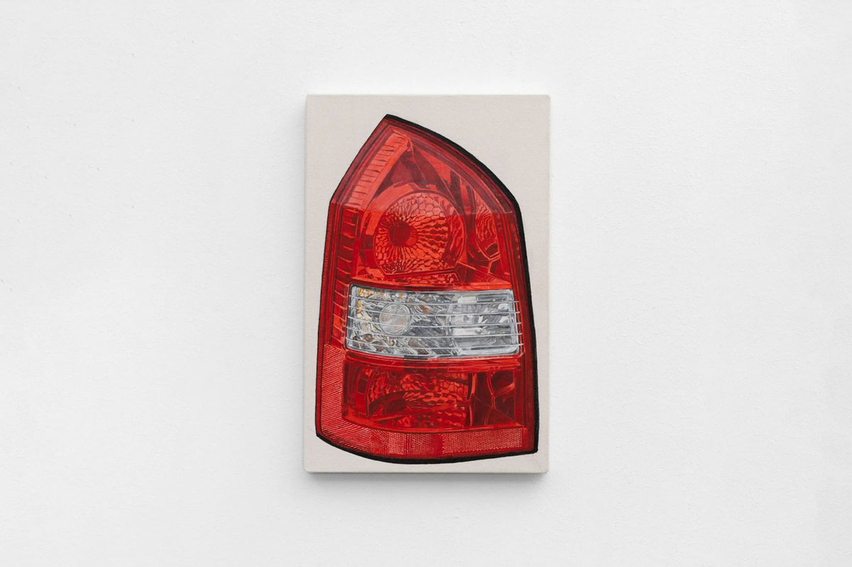 Through her distinctive application of paint, Appel captures the inherent beauty of these otherwise ordinary objects. Light reflects off the inner workings of the car light, bearing an architectural resemblance with its segmented and mirrored construction. Pavement (cobble stones), 2024 is almost abstract in its monumentality, recalling minimalist painters such as Agnes Martin with its muted colours and grid-like formation.