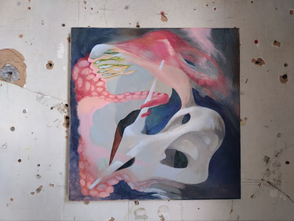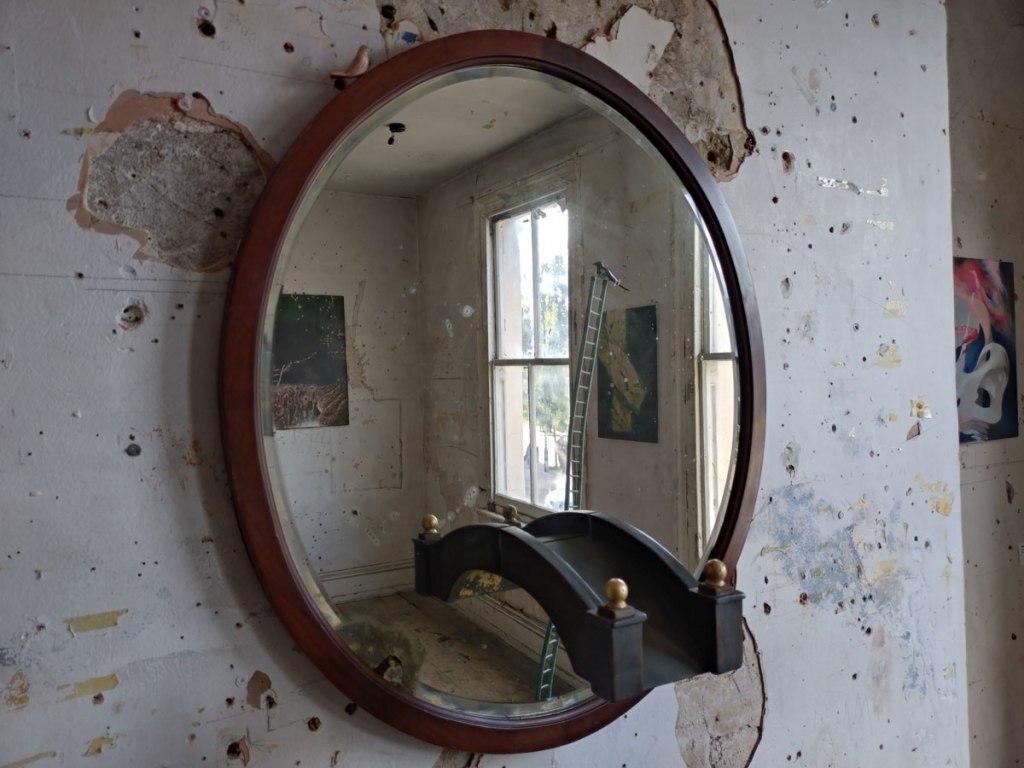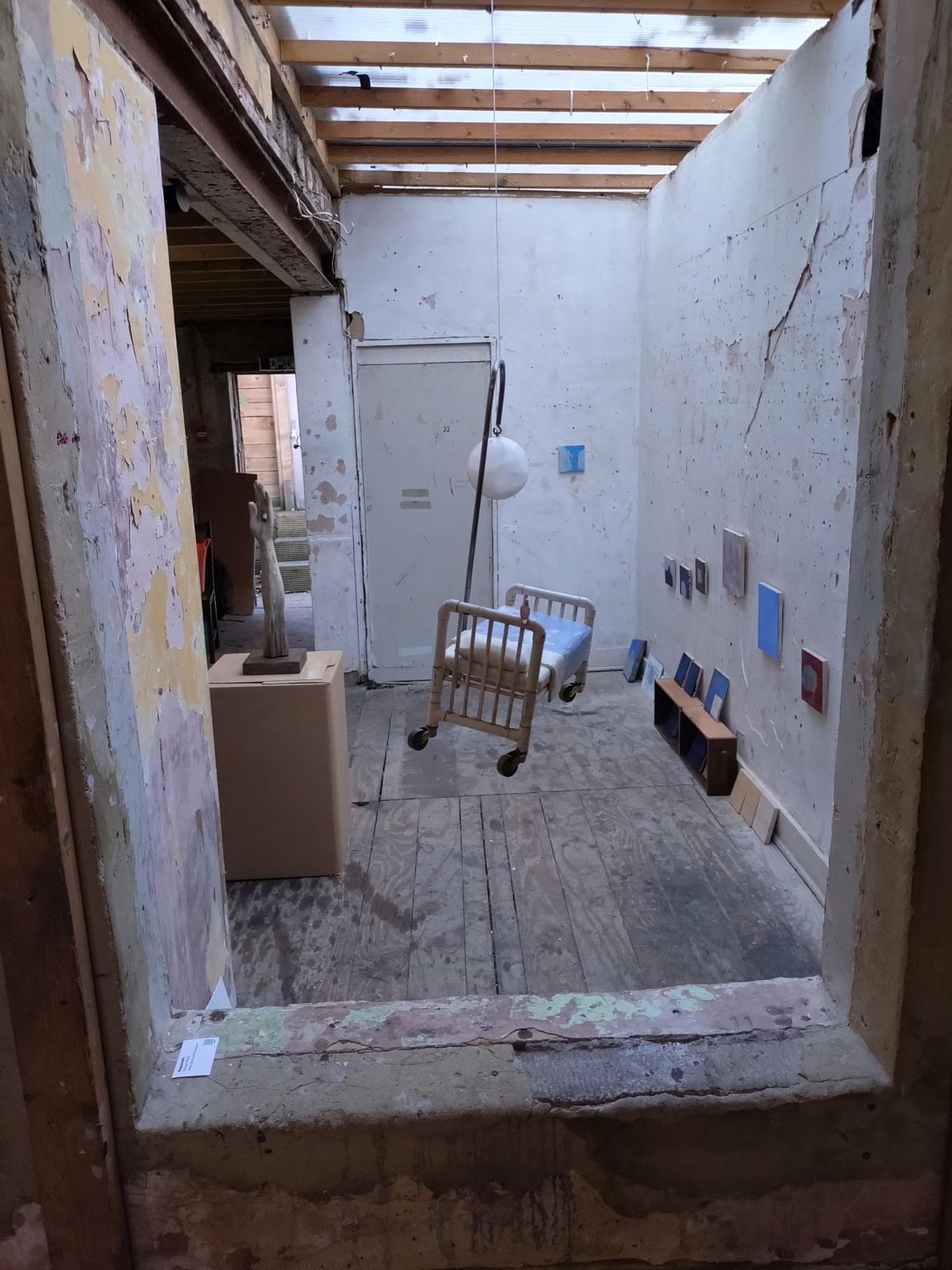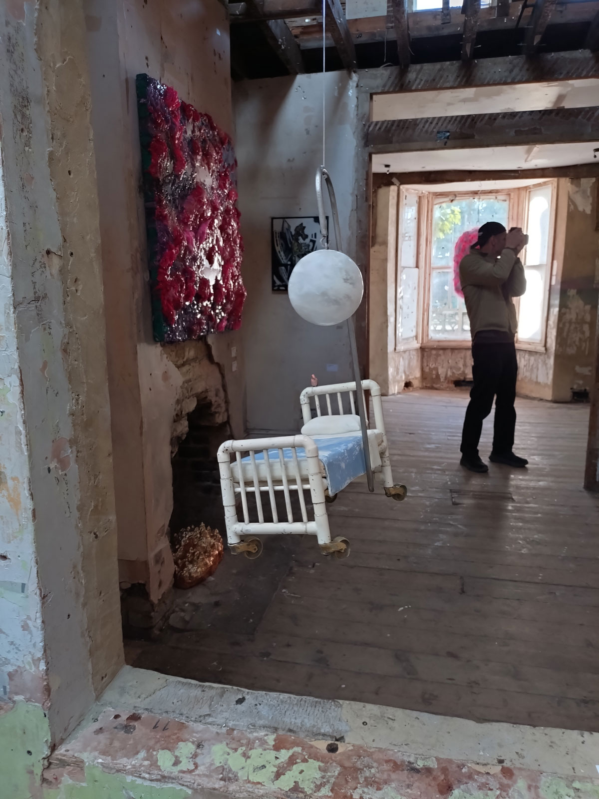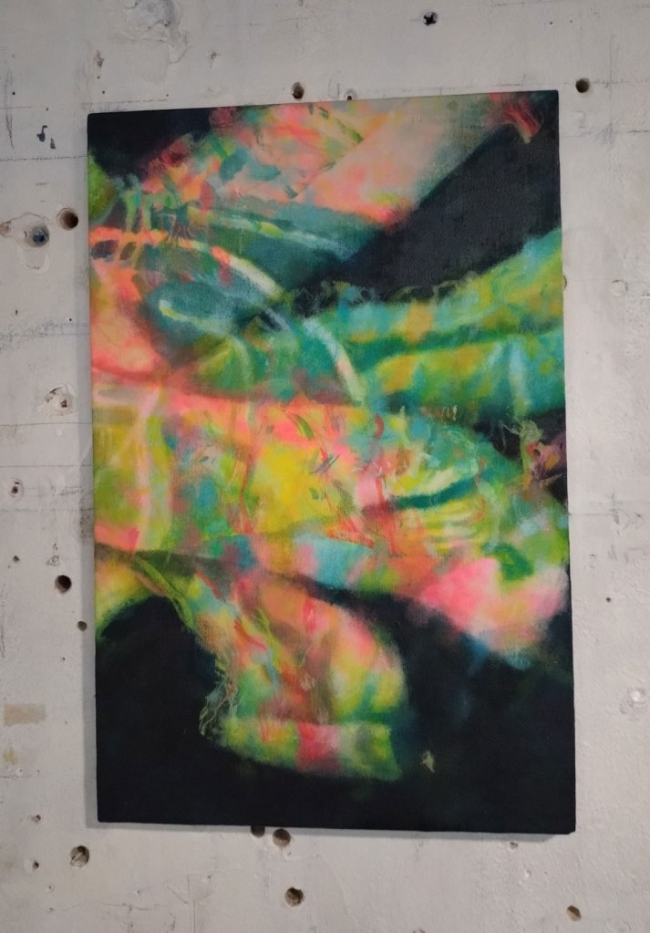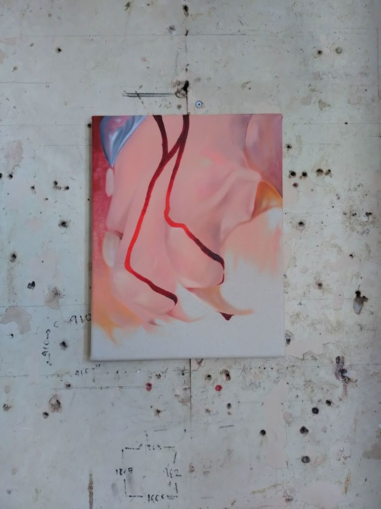 Back to the dust of Safehouse for yet another group show, but it is such a good place for an artist-led group show, not so much in the bad lighting of an opening night, more one for your daytime exploring, especially at this time of the year – “Being is a state of porosity. Just as our breath is also the air. Just as the redness we see when facing the Sun with our eyes closed is our body collapsing with a star. The artworks presented in this show contemplate the merging of the inner and outer worlds of the body, framing the idea that separation is an illusion and that nothing exists in isolation. Inviting viewers into an intersubjective, rather than object-based, perspective of the world, these seven artists challenge the illusion of difference, separation, and value. Together they celebrate experience as a web of relationships and connections — as profound and radical entanglement. If we are inherently undifferentiated, if our connections are irrevocable, then our bodies and selves inevitably collapse out to the social, political, and ecological dimensions of our world”. A worthy statement if you want it, what we actually have here is seven artists sharing the space and having some really rewarding conversations across the two floors of the almost falling down space.