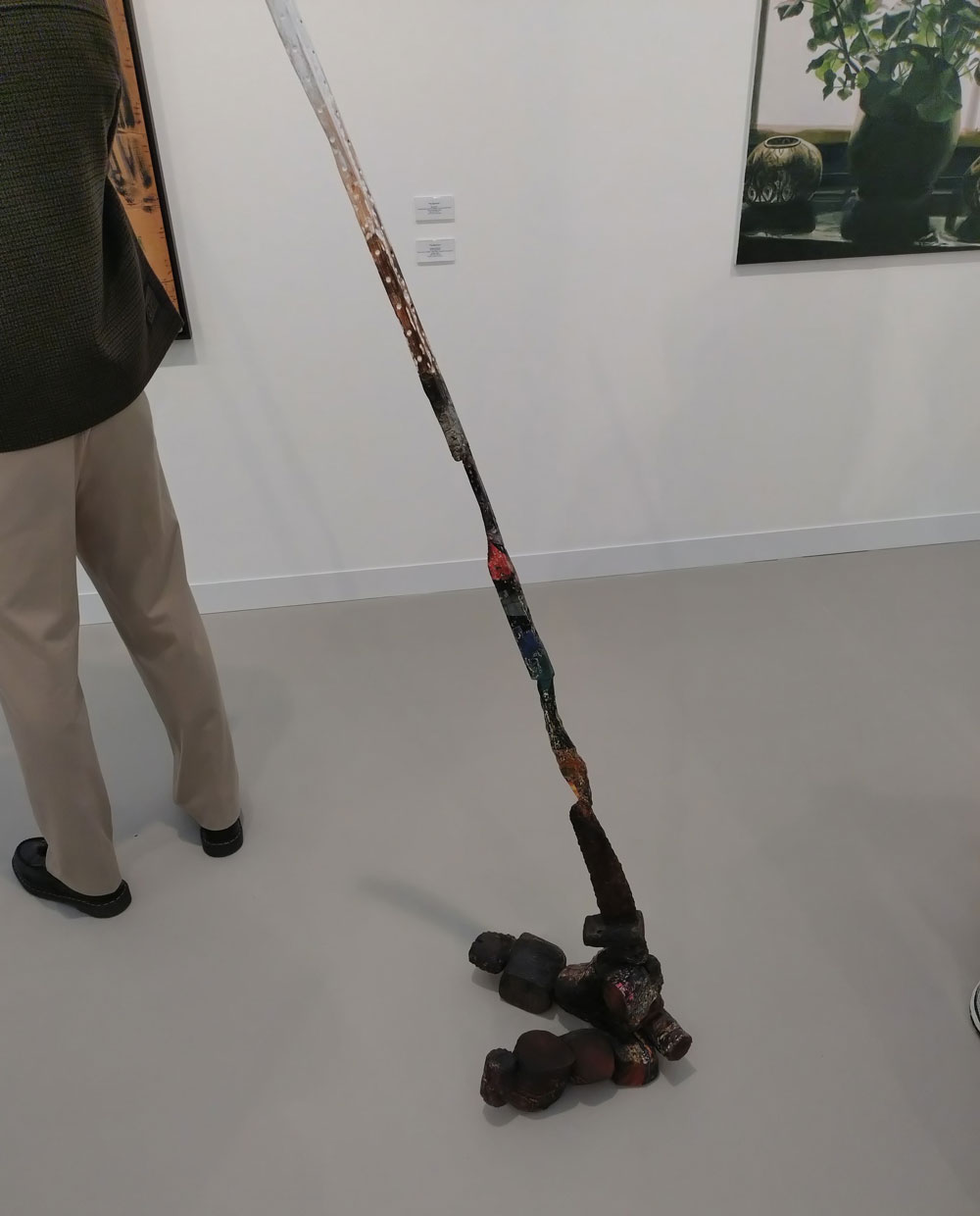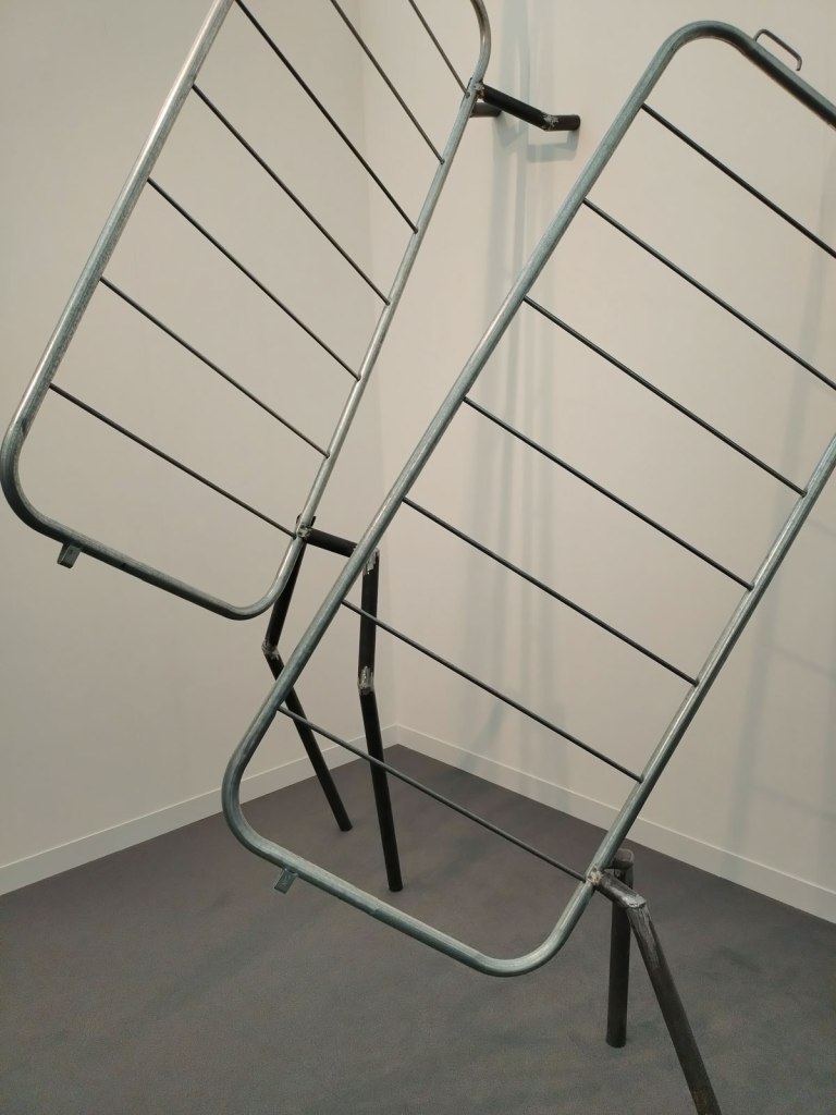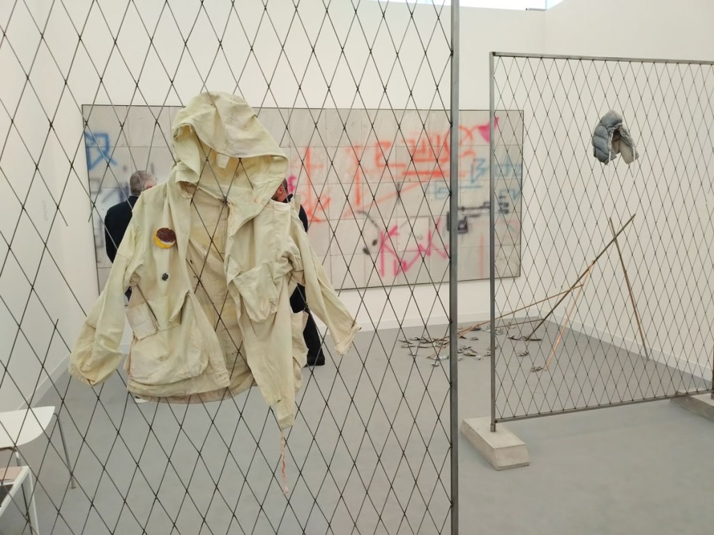 Galleria Lorcan O’Neil have brought some Tracey Emin‘s from Rome again, that always feels like taking coals to Newcastle, the gallery from Margate that are showing some of her work makes far more sense. It is also two hours and two minutes into things before the first piece of neon is spotted, have we finally gone and got over the need for all that neon wordery? Not so many textile flavoured works this year either, that a little disappointing, do like those large Yin Xiuzhen pieces, a piece in ten parts called Weapon, made from “used clothes and daily things” that Beijing Commune have brought along