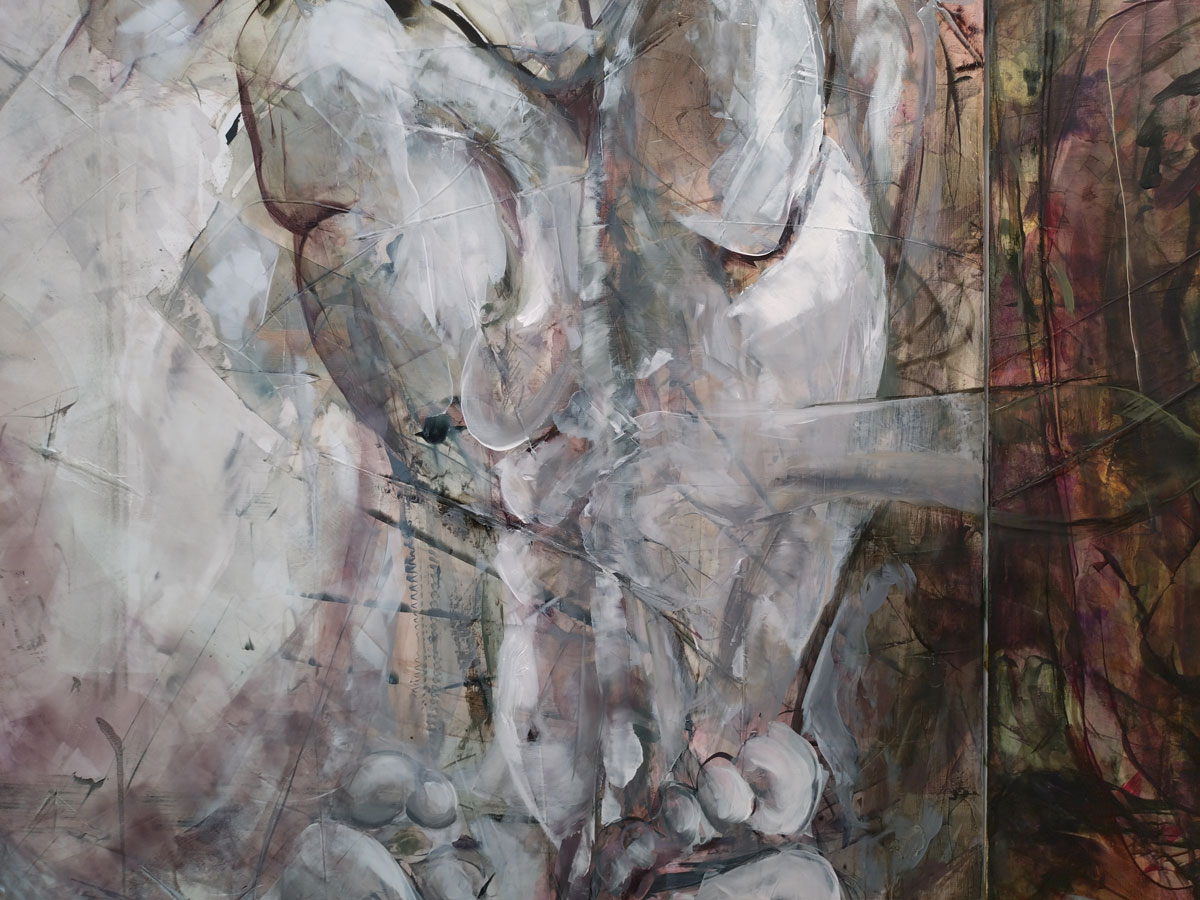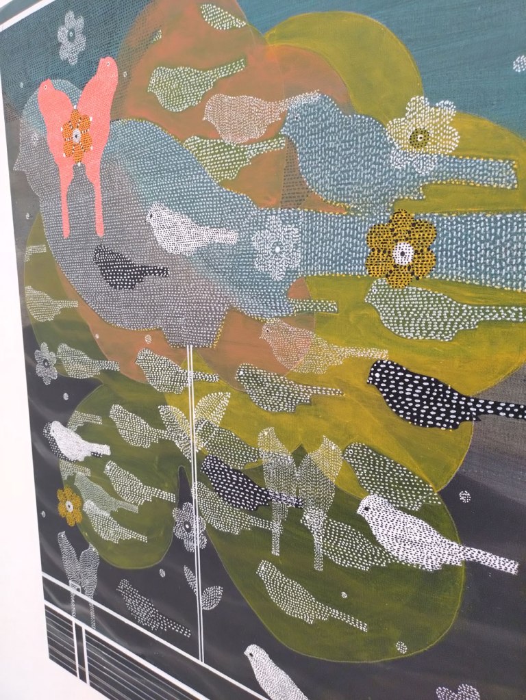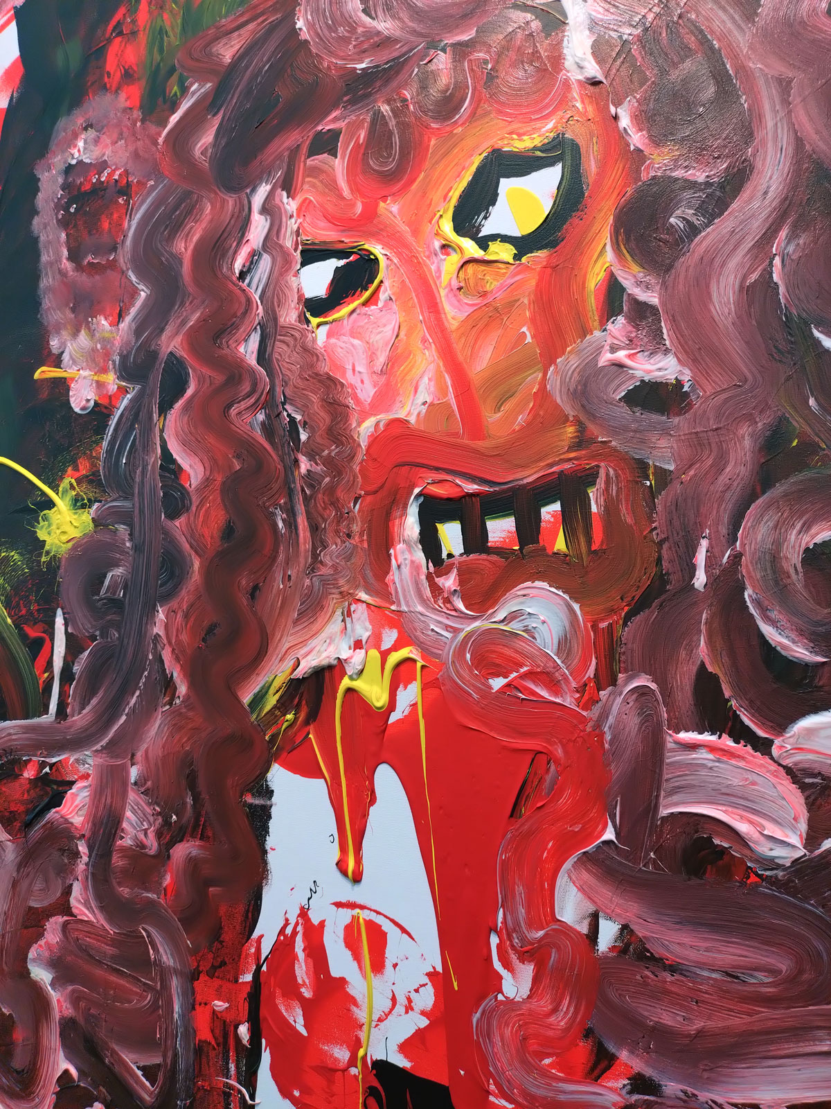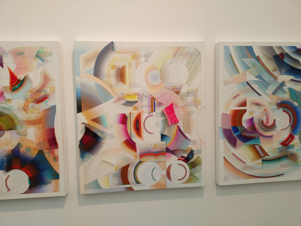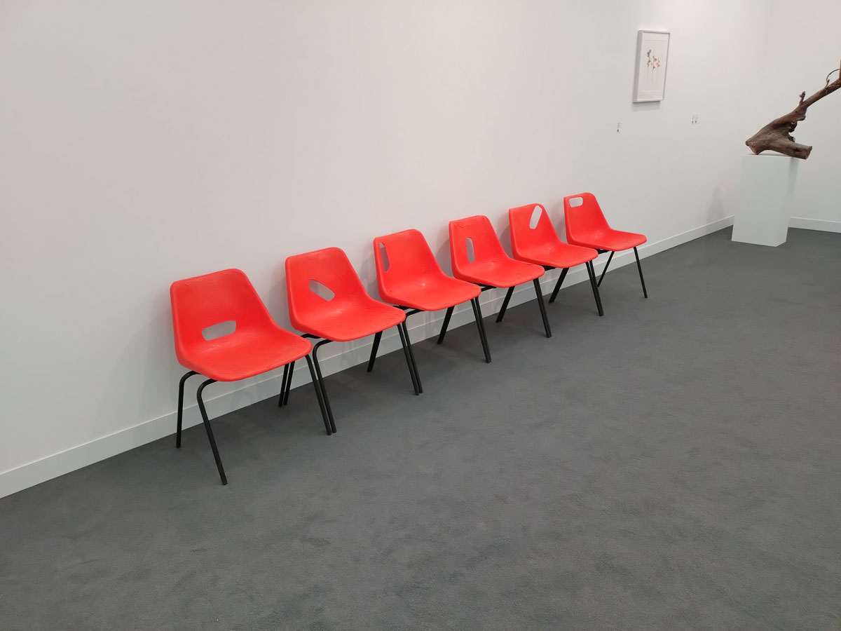 We’d just left Nour Jaouda and those wonderful layers of leaves that London gallery Union Pacific were showing, whern we took that break at the end of part one. I really had intended to keep it short this year but then in there in that vast vast space in amongst that art there are things that simply must be shared like those two gorgeous, no, not the right word, but that red is gorgeous, over there, so easy to walk past them, there’s these there’s these two really powerful Chang Ling paintings, definitely a pair, side by side, strong, just boldly there, in the middle of the big white wall that is Don Gallery‘s booth – a contemporary art gallery from Shanghai showcasing both emerging and established Chinese artists. Booth A04 if you need to know, if you’re going you’ll surely see them as you walk past, they do demand attention.