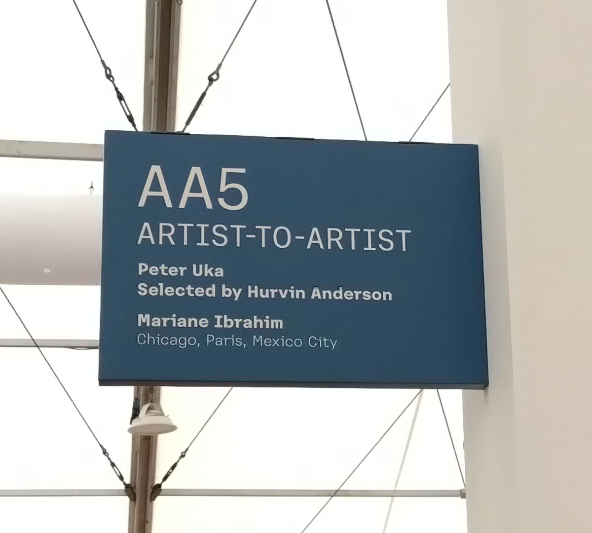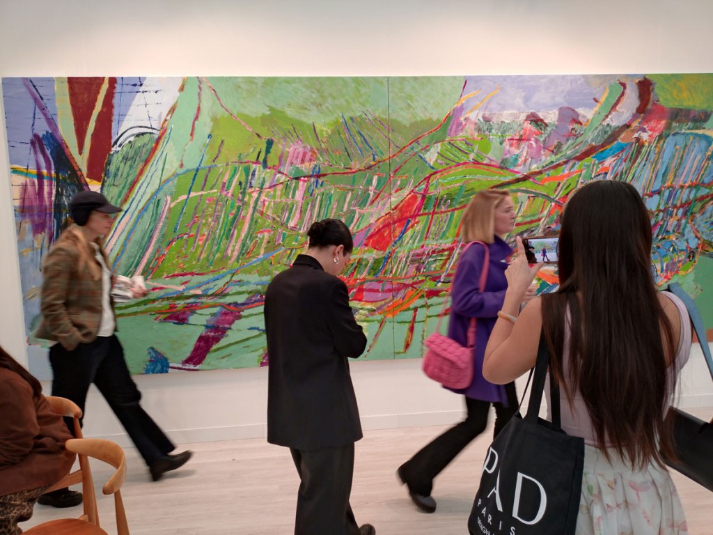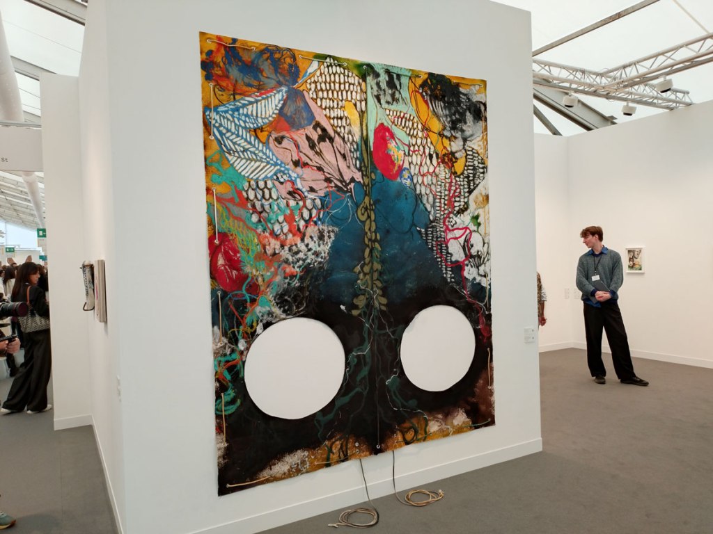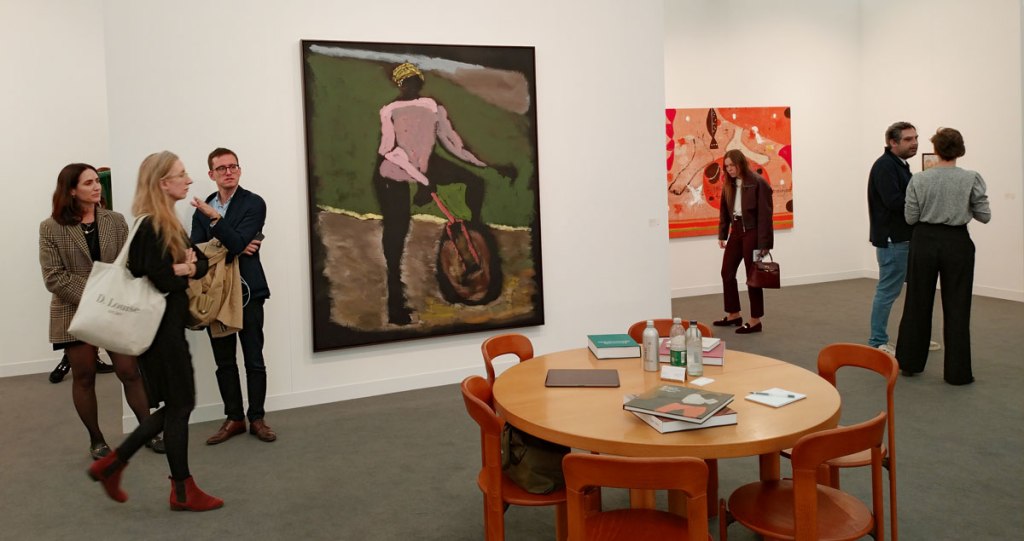 And on we go, they never have a pint of Landlord at the Timothy Taylor Gallery booth, really could do with a pint right about now, a pit stop and a pint, not even going to take a look at how much an actual pint is in here. Do like these big bold green paintings – “Timothy Taylor is pleased to return to Frieze London with a presentation of new works by Paul Anthony Smith. Centring on two ongoing series, Dreams Deferred and Eye Fi Di Tropics, Smith will feature large-scale oil paintings and picotage works that reflect on diasporic identity, cultural memory, and the landscape” those paintings are refreshing, they are as good as a pint right about now, they’re refreshing, cleansing, there, without meaning to be, right now
