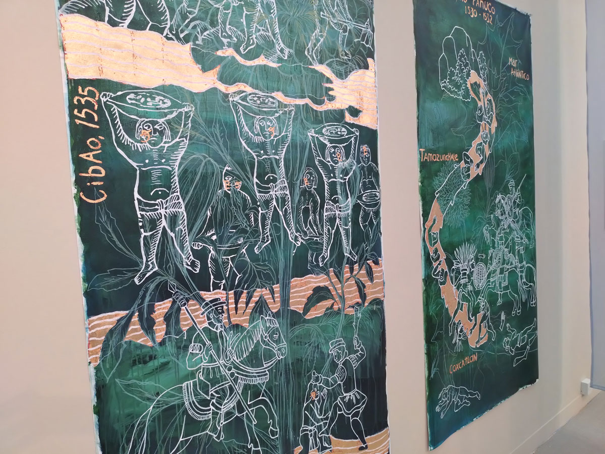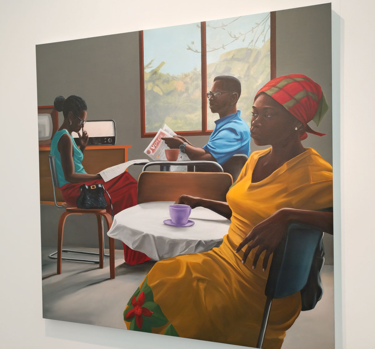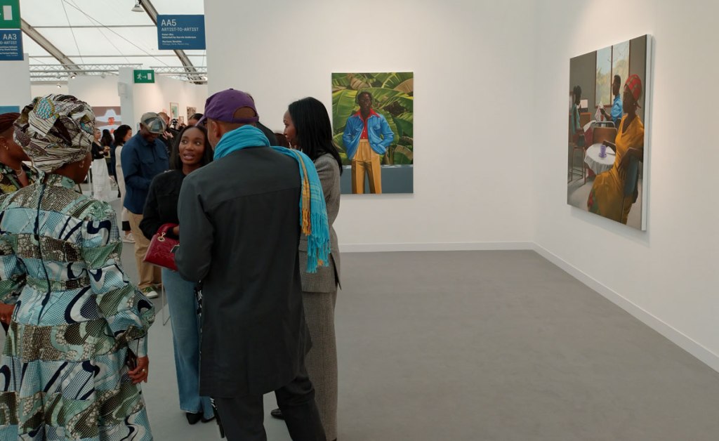 And on we go, they never have a pint of Landlord at the Timothy Taylor Gallery booth, really could do with a pint right about now, a pit stop and a pint, not even going to take a look at how much an actual pint is in here. Do like these big bold green paintings – “Timothy Taylor is pleased to return to Frieze London with a presentation of new works by Paul Anthony Smith. Centring on two ongoing series, Dreams Deferred and Eye Fi Di Tropics, Smith will feature large-scale oil paintings and picotage works that reflect on diasporic identity, cultural memory, and the landscape” those paintings are refreshing, they are as good as a pint right about now, they’re refreshing, cleansing, there, without meaning to be, right now