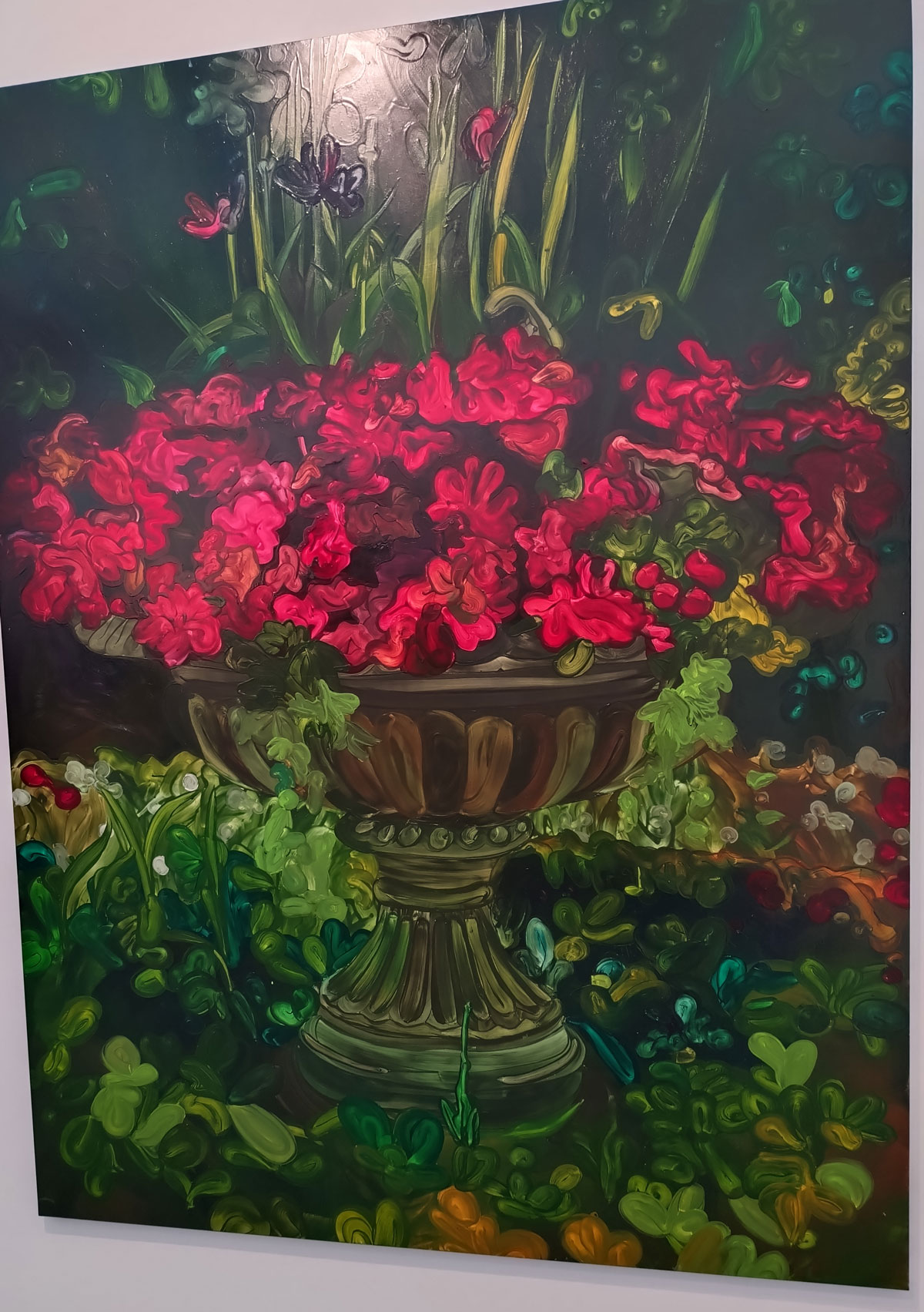 – “The paintings in Dreams Deferred offer scenes of abundant gardens with hydrangeas, marigolds, anemones, and tiger lilies rendered in verdant and sun-kissed hues. Across the impasto works, Smith variously places the viewer inside and outside of these lush spaces, some of which are obscured and abstracted by a foregrounded chain link fence. These works summon notions of calm, respite, and prosperity, as well as the foreclosure of these experiences.” – respite indeed, gloriously so – Paul Anthony Smith (b. 1988, St. Ann’s Bay, Jamaica) is a Jamaica-born, New York-based artist who explores themes of post-diasporic identity, community, and cultural memory through his paintings and photography