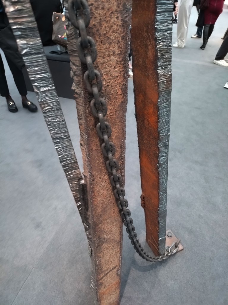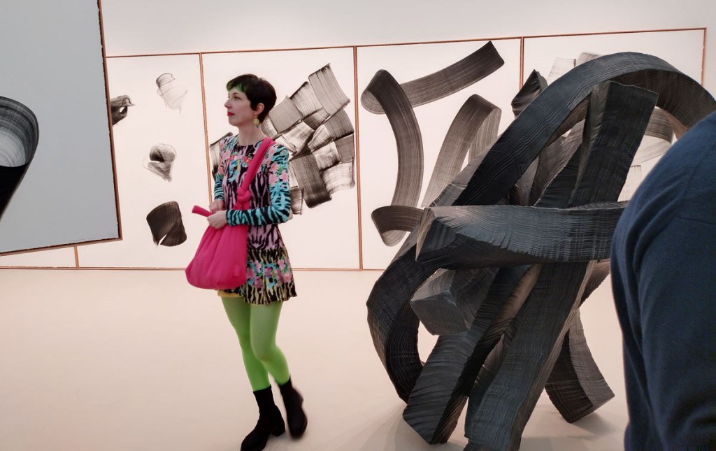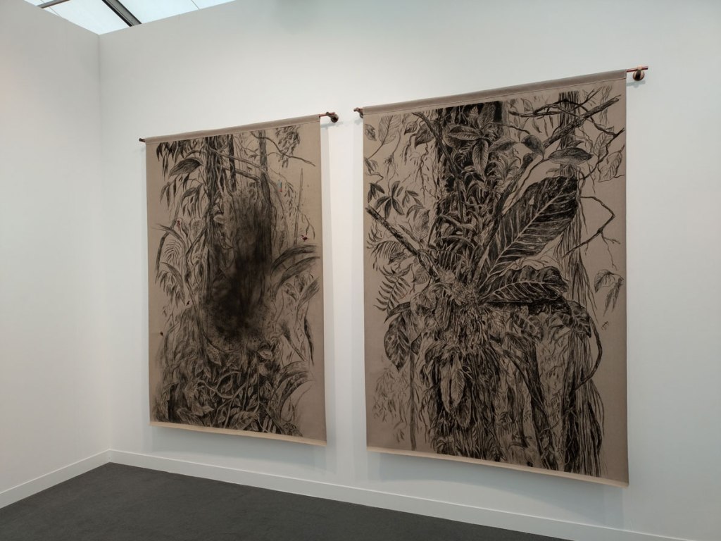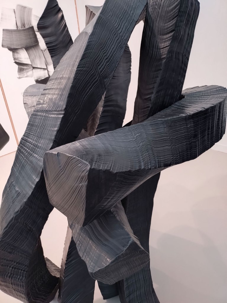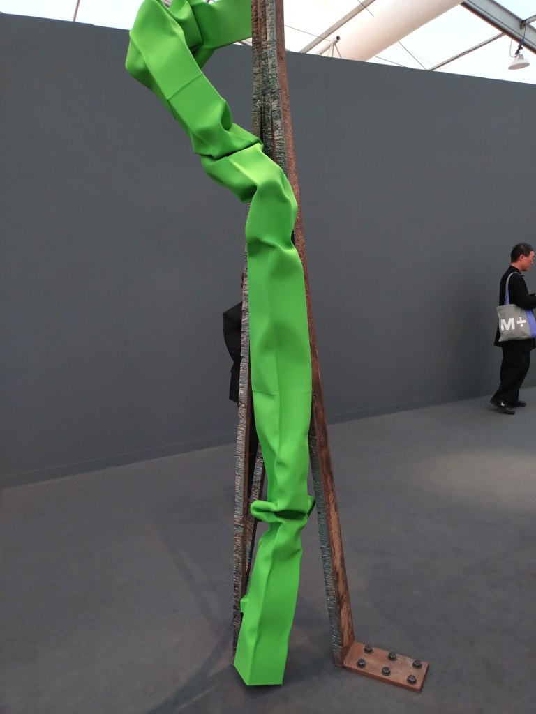Lee Bae and that very (very) black wooden sculpture that you so want to touch, that giant wooden piece that’s actually a bronze and his pulling us into the abysses of that blackness as you walk around it again and again, his different ways of exploring the same subject that Johyun Gallery from Busan, Seoul are showing at Frieze this year. The big big sculpture, big in so many ways, that Brushstroke Sculpture (a bronze edition of three) that you just want to spend the whole day with, his blurred lines somewhere between very big drawings, painting, charcoal, those panels that play some kind of support act to that sculpture and turn the whole booth into what really is a powerfully rewarding installation… “Based in Seoul and Paris, Lee Bae focuses on the expressive potential of charcoal as a medium”, he really has won Frieze, he’s also got some work in Frieze Masters we are later to discover – okay no, no one won, art is not a vote or an award or a competition, Lee Bae’s work excited me most this year though, art was the winner and I could have stood looking at that black charcoal bronze for hours and hours (and hours), I walked around it again and again, it was jsut wonderful, thank you Lee. Actually I did thank him at the time, he just smiled, neither of us has to say too much more, we both smiled…