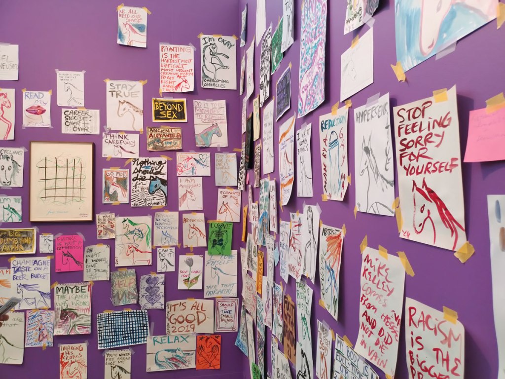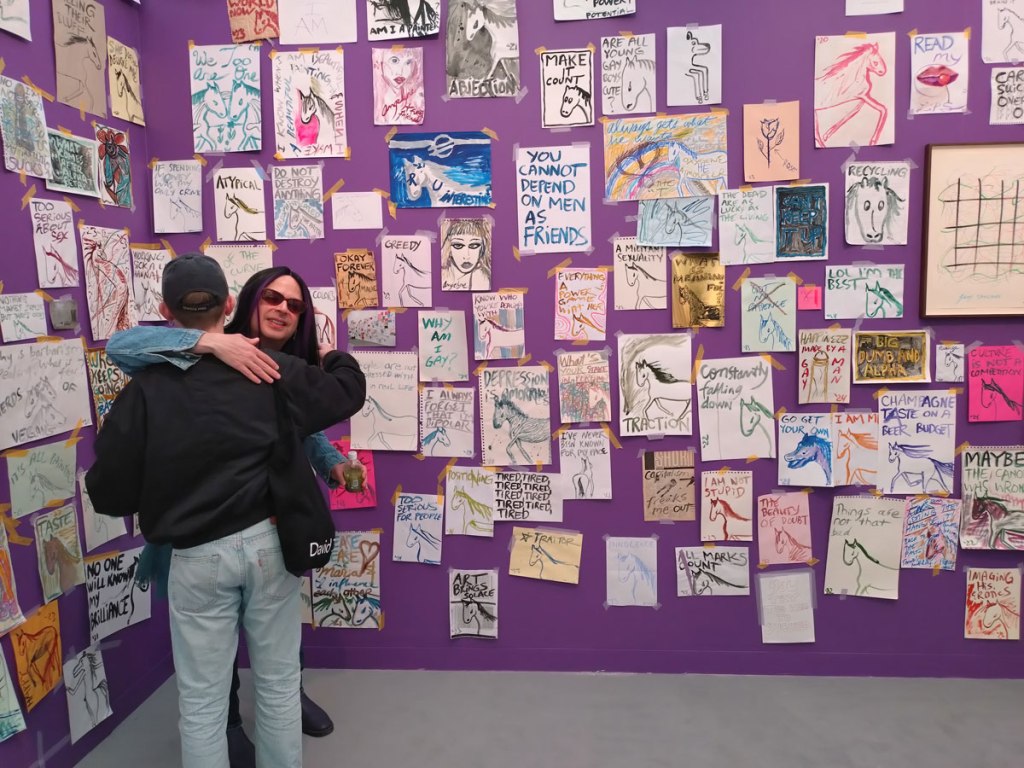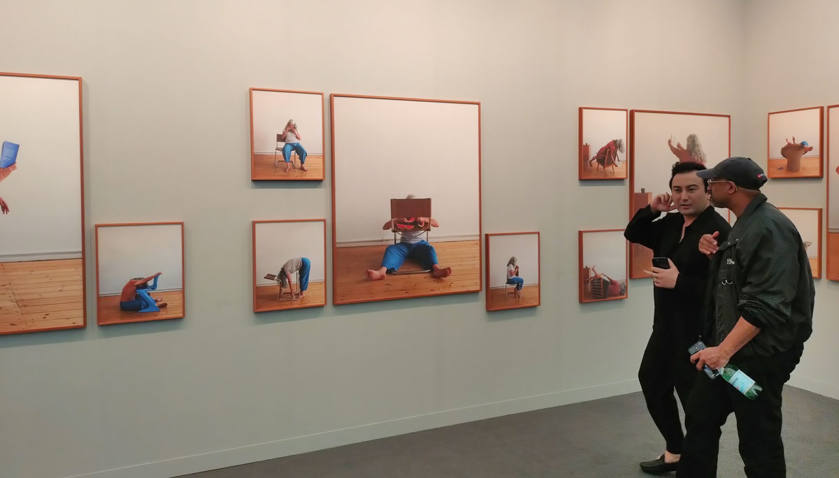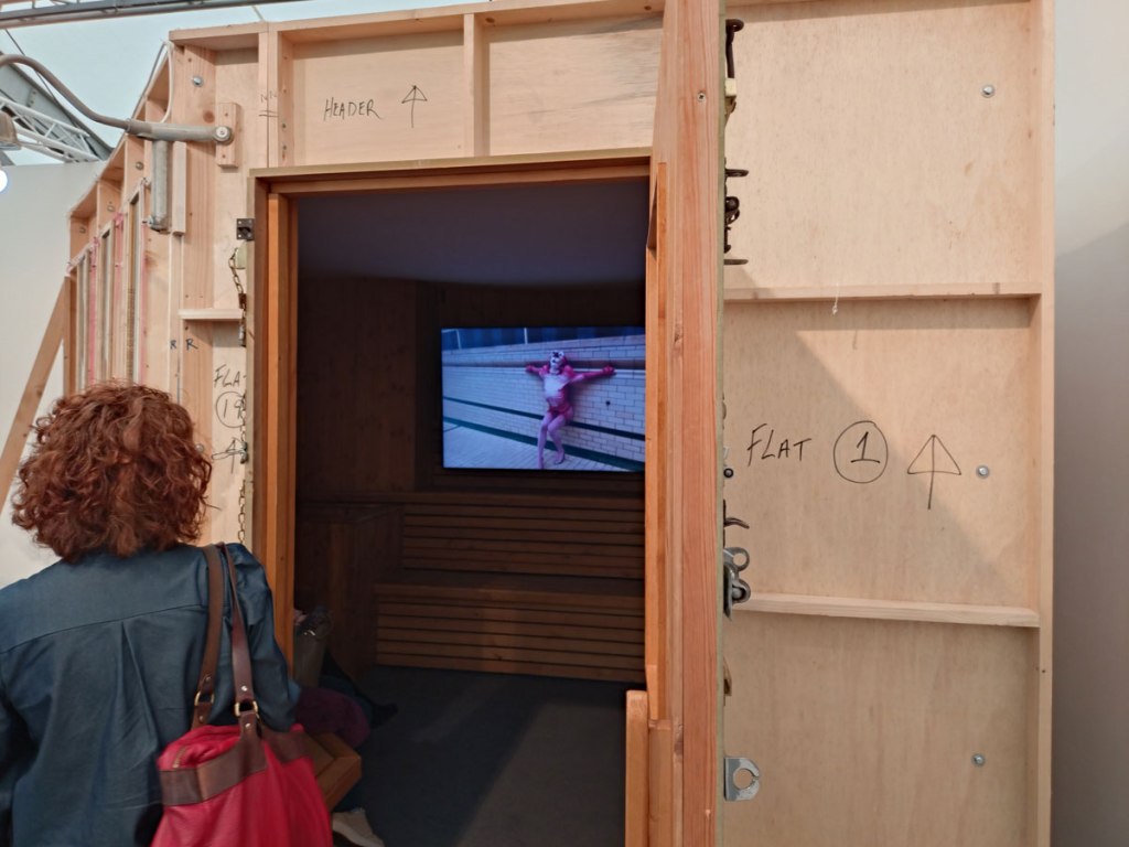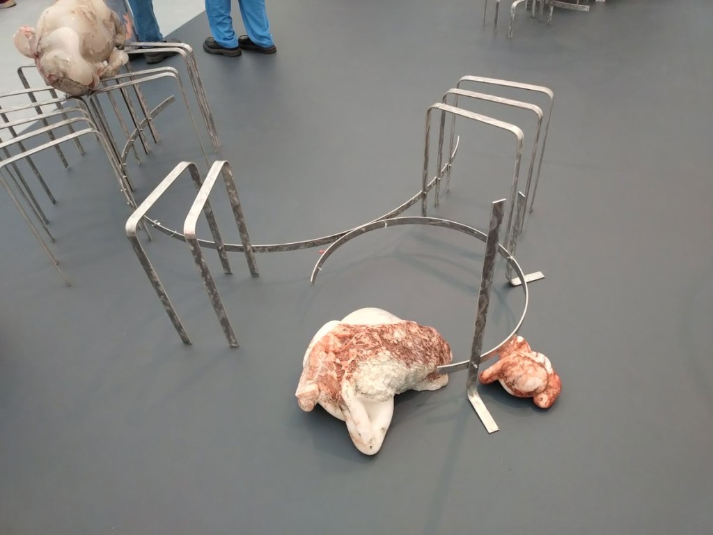 There’s nothing anywhere near as radical as the big feminist focus section we had in 2017, what happened to all that? Was it too much of a distraction for the galleries who have paid so much to be in here? Was thunder stolen? And inflatable penguins? Why?! All the way from Copenhagen with nothing but a big gang of inflatable penguins? Why? The shear fuckoffery of it all? The charge, the bolt, the buzz, not the money, the Attention? Something to do with Sack Trick? Well they are big in Denmark and they were saying goodbye to Robin today – in a leopardskin coloures herse, now that’s art!