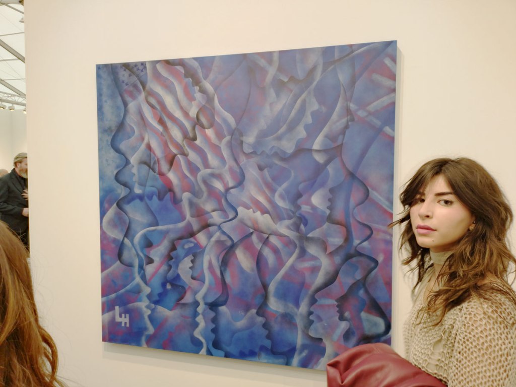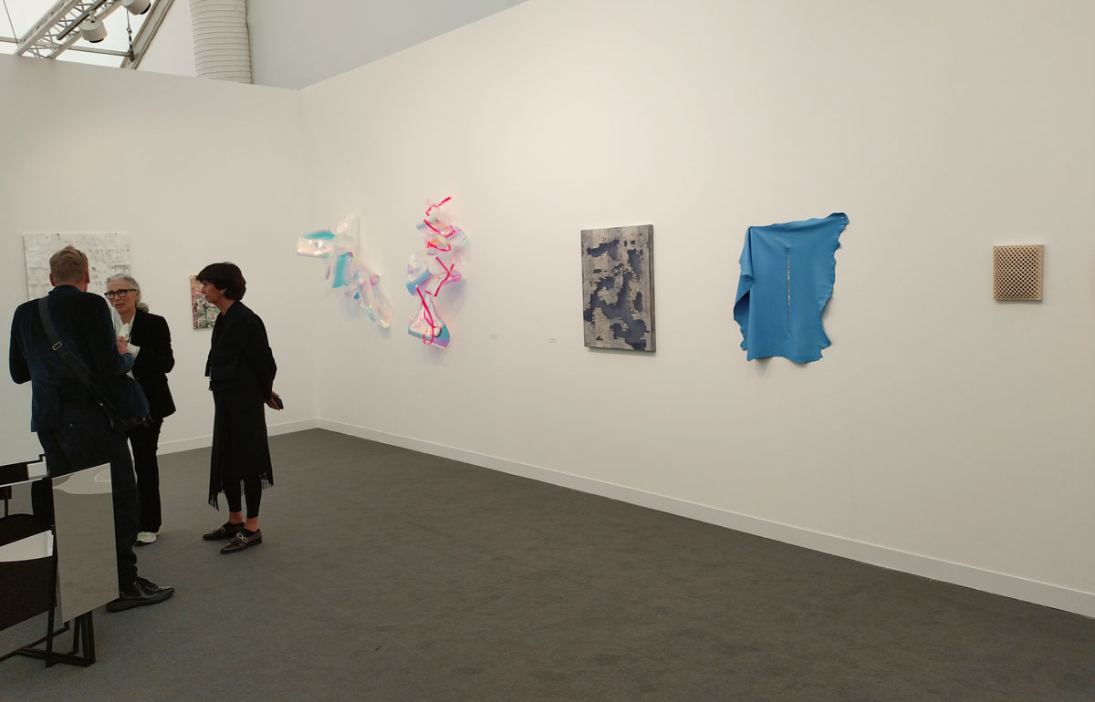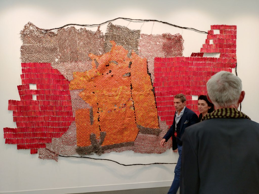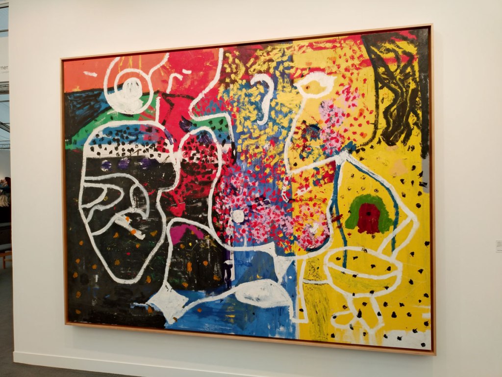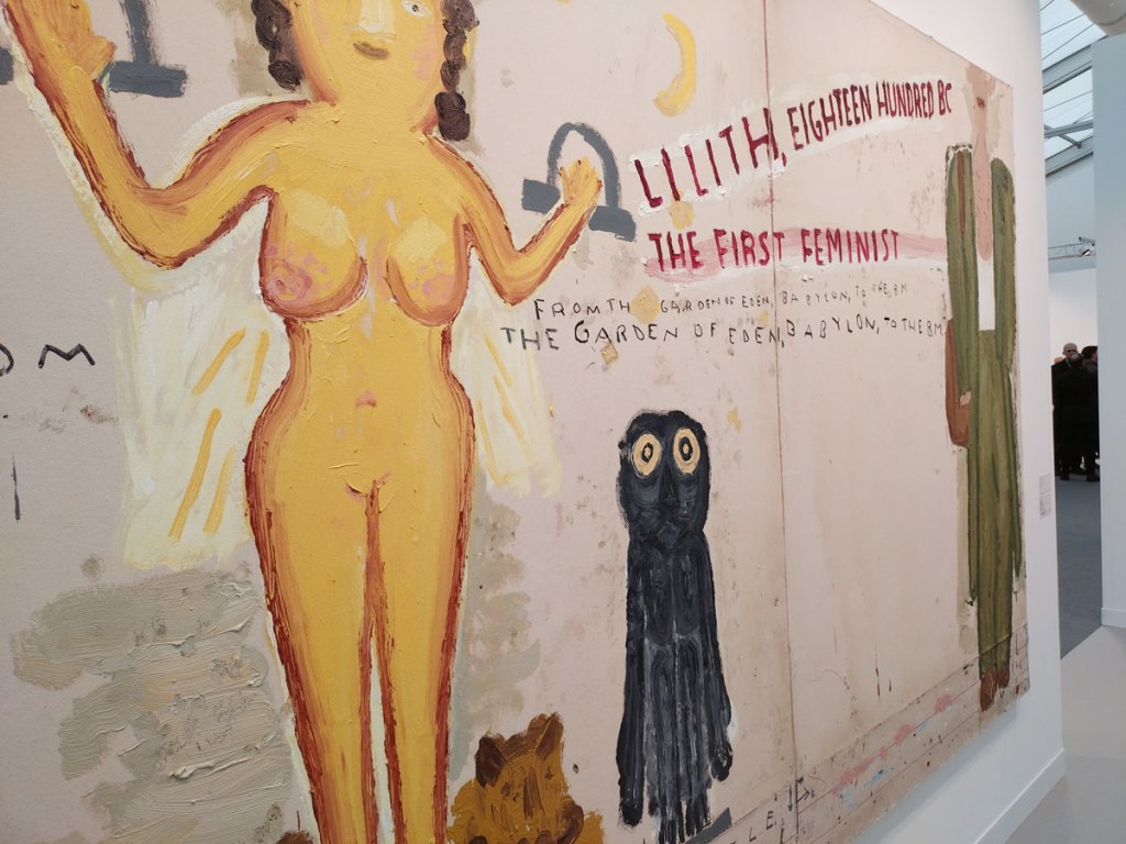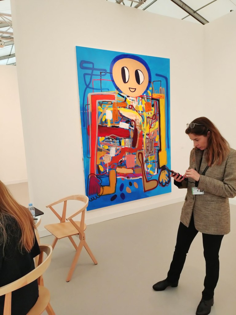– You see, I love this, exploring all this art, all this endless art, all these artists, and just simply walking up to the simple label, taking a simple photo and looking things up when I get home. Pretty much everything has a clear label here – not like the too cool for school current thinking from the annoying crop of rich kids who’s mummies have paid for them to go curator school and now find themselves gatekeeping in a more annoying way then it ever was even five years ago, labels and name are cool as fuck you idiots! I want to know who’s painted what – are we still in the yellow zone? That wire mesh of Paul Anthony Smith‘s does taste of New York now I think about it, and his paintings are so worth thinking about, they looked even better after Friday’s second visit to the fair. The more I think about them, and they have been in my head, the more I thinking about them, the better they get….