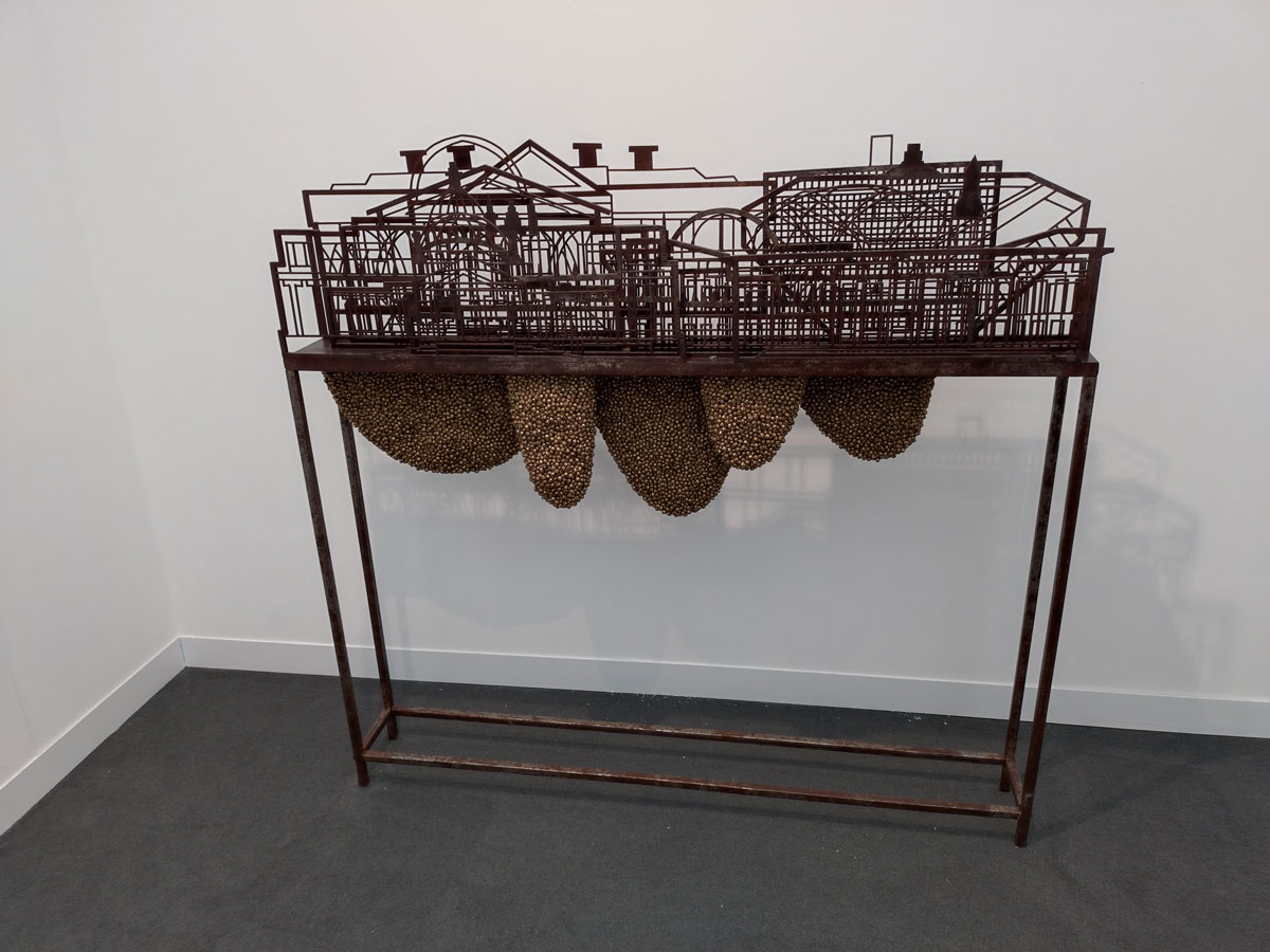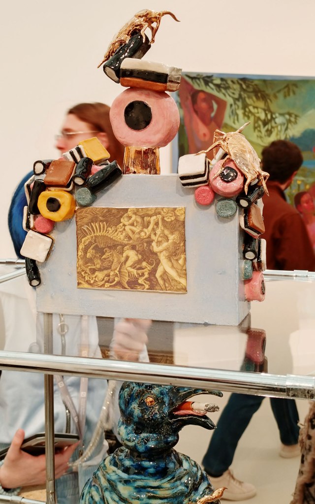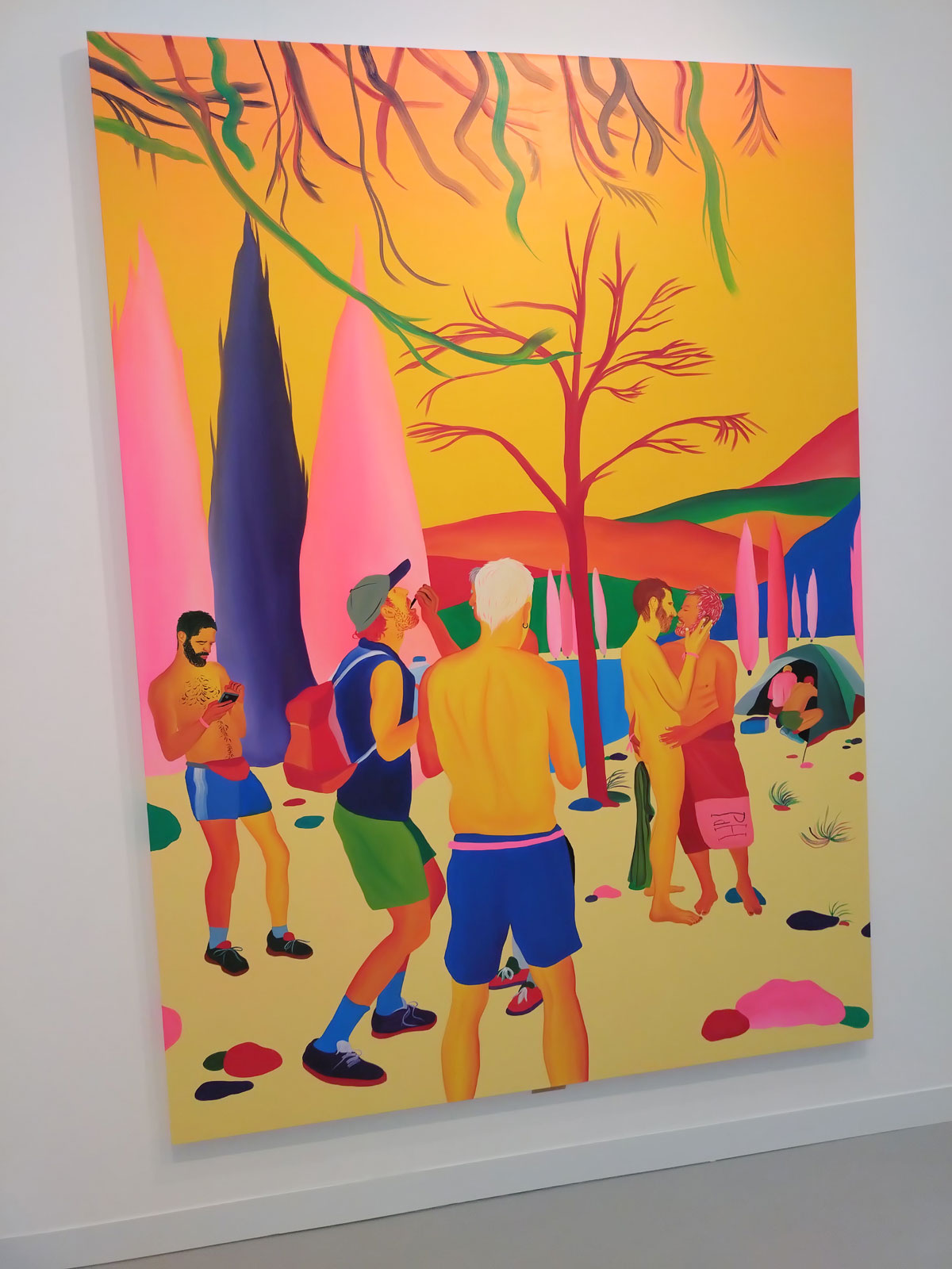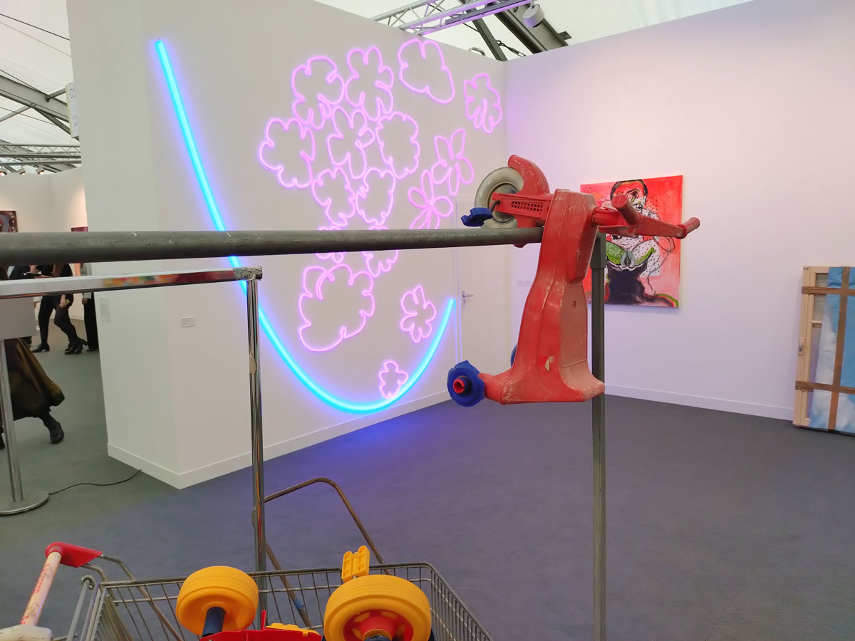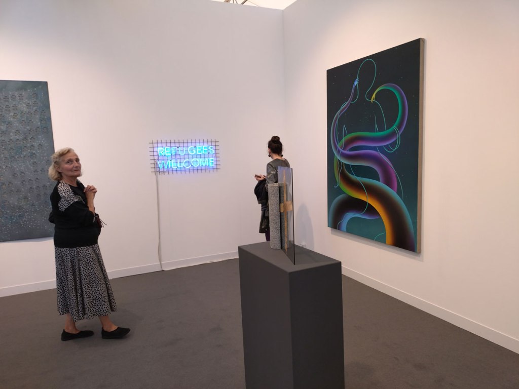 – You see, I love this, exploring all this art, all this endless art, all these artists, and just simply walking up to the simple label, taking a simple photo and looking things up when I get home. Pretty much everything has a clear label here – not like the too cool for school current thinking from the annoying crop of rich kids who’s mummies have paid for them to go curator school and now find themselves gatekeeping in a more annoying way then it ever was even five years ago, labels and name are cool as fuck you idiots! I want to know who’s painted what – are we still in the yellow zone? That wire mesh of Paul Anthony Smith‘s does taste of New York now I think about it, and his paintings are so worth thinking about, they looked even better after Friday’s second visit to the fair. The more I think about them, and they have been in my head, the more I thinking about them, the better they get….