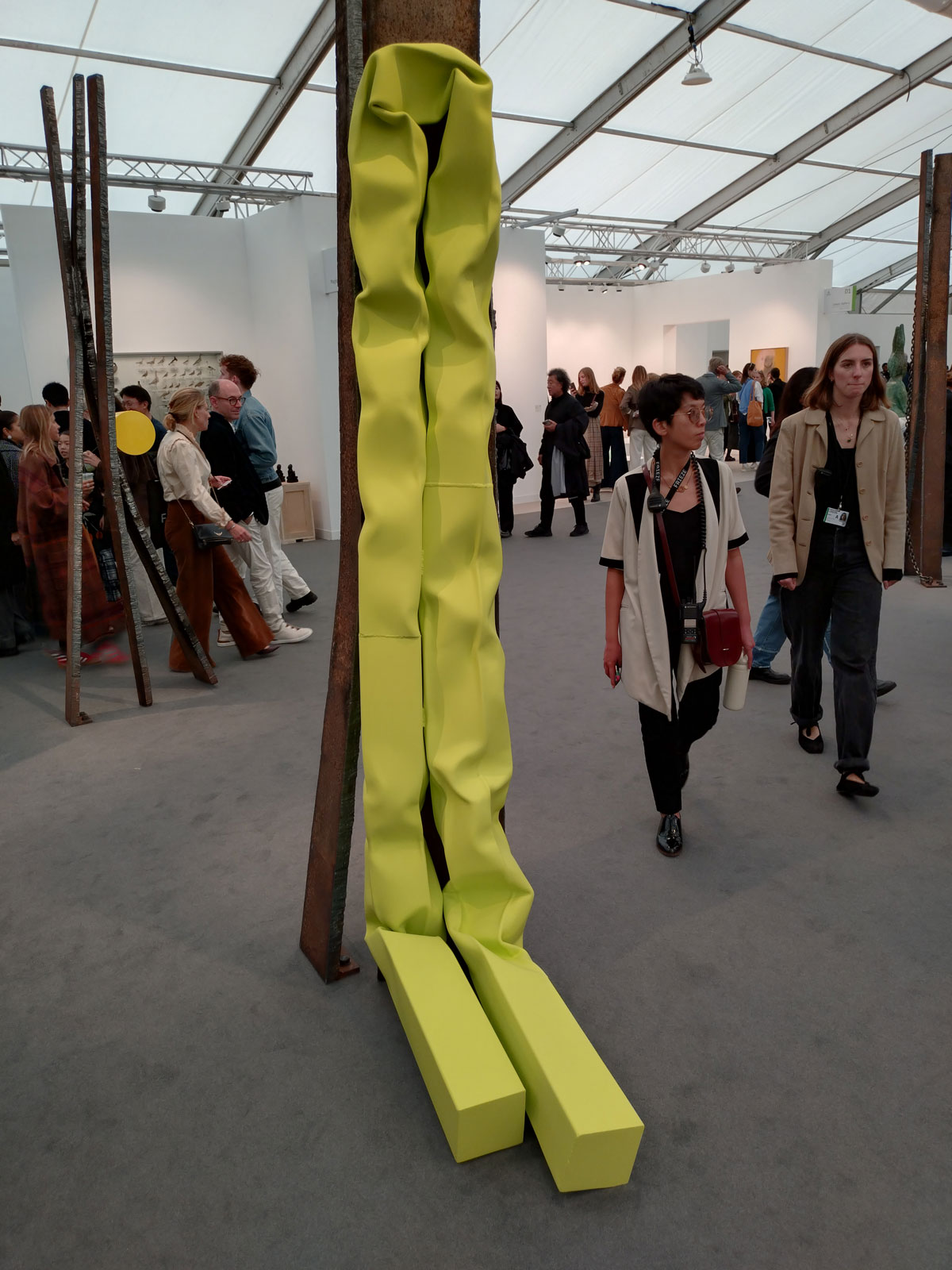 Where were we? Still in the yellow zone, the blue green and whatever else there is is still to come… This is Part Two, you really need to read Part One first – Frieze Week Part One, we haven’t even got to the bit about the plastic goose with a revolving head, yet and well, um… Here’s the first part of what we’ve made of the actual Fair that Frieze London 2024 so far… So we took a break, a very short one, here comes Part Two and no, we haven’t even got to those damn inflatable penguins yet and some kind of plastic goose with a revolving head or the underwear or the, well, um, part two in we go again…