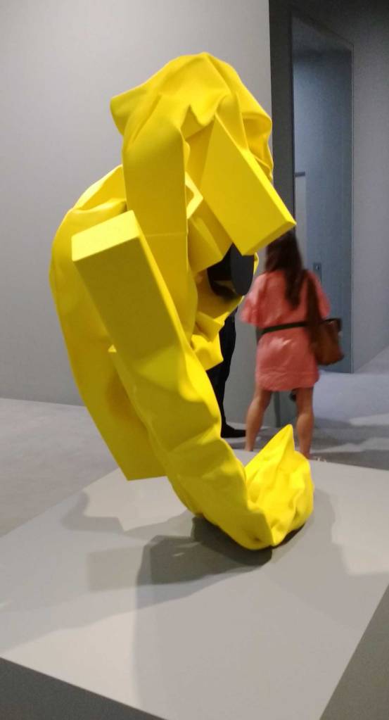 Actually now you mention “digital” it does kind of look like it was all put together to look good on digital media, on Instagram feeds, on line, those colours are bold, striking, and I did ask the guy pushing the blue manual carpet sweeper hoover thing around them when I encountered his for a second time on Friday’s return visit, and yes he has been employed just by Gagosian (or was it the artist?) just to walk around the nice yellow and green installations when clearly he didn’t need to in terms of keeping the carpet clean. Actually he got rather pissy when I asked him, like he had been discovered or something, he was a positive if largely unnoticed and maybe unintentional part of the performance though, I’ll post him on YouTube later, hey, it was a great piece of performance art.