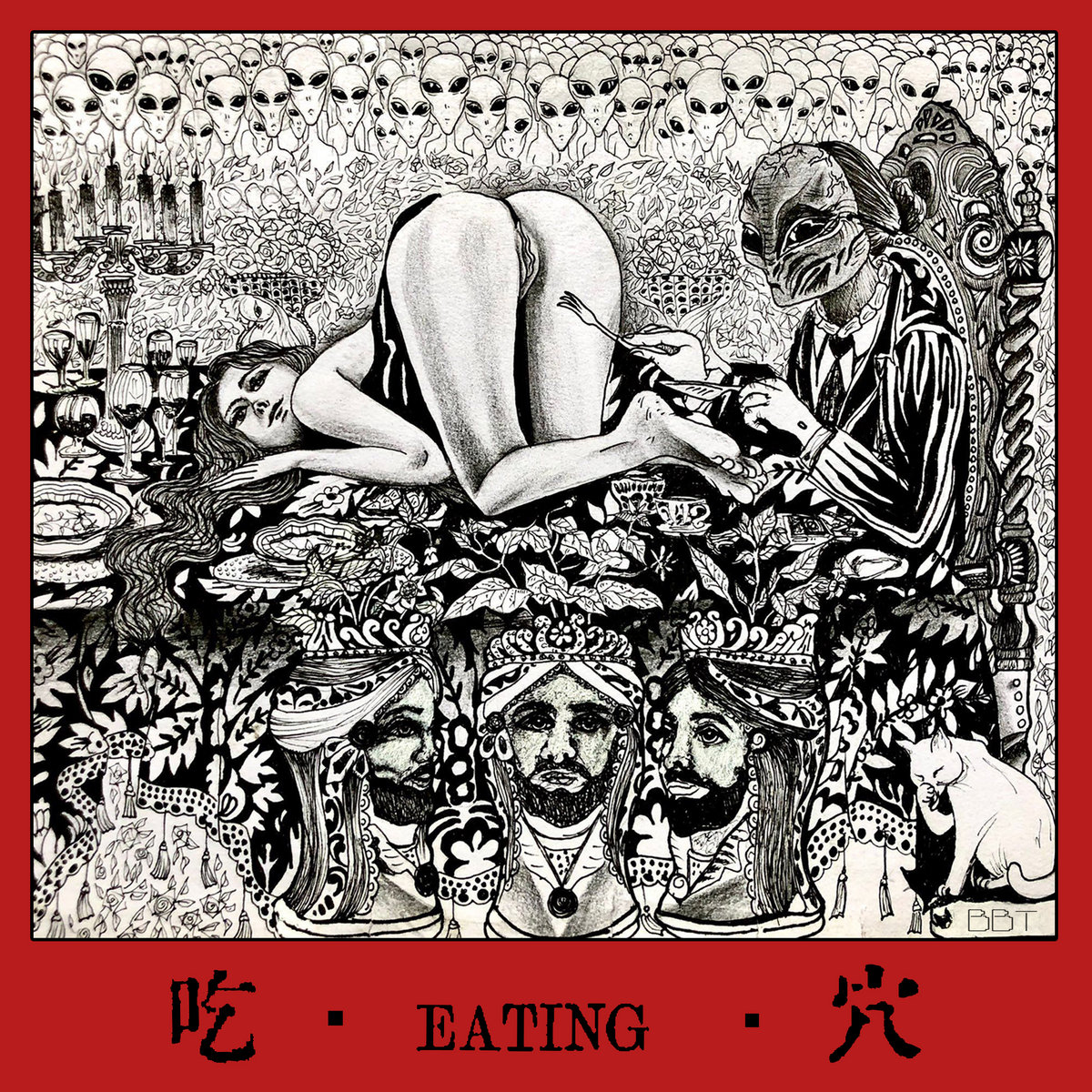 Embodied by Nathan L. (flaubosax, flute, electronics), Søren Høi (drums), and Uldis Vitol (bass), Bye Bye Tsunami infuses guest guitar from Manlio Maresca on one song, and guest vocals from the likes of Sigurd Neimann, Francesco Colocci, Neker, and Sabiwa throughout the record. Eating was mixed and mastered by Marco Colocci, and features art by Frances Lili Farmer, with the design/layout handled by Yunyen Chuang.