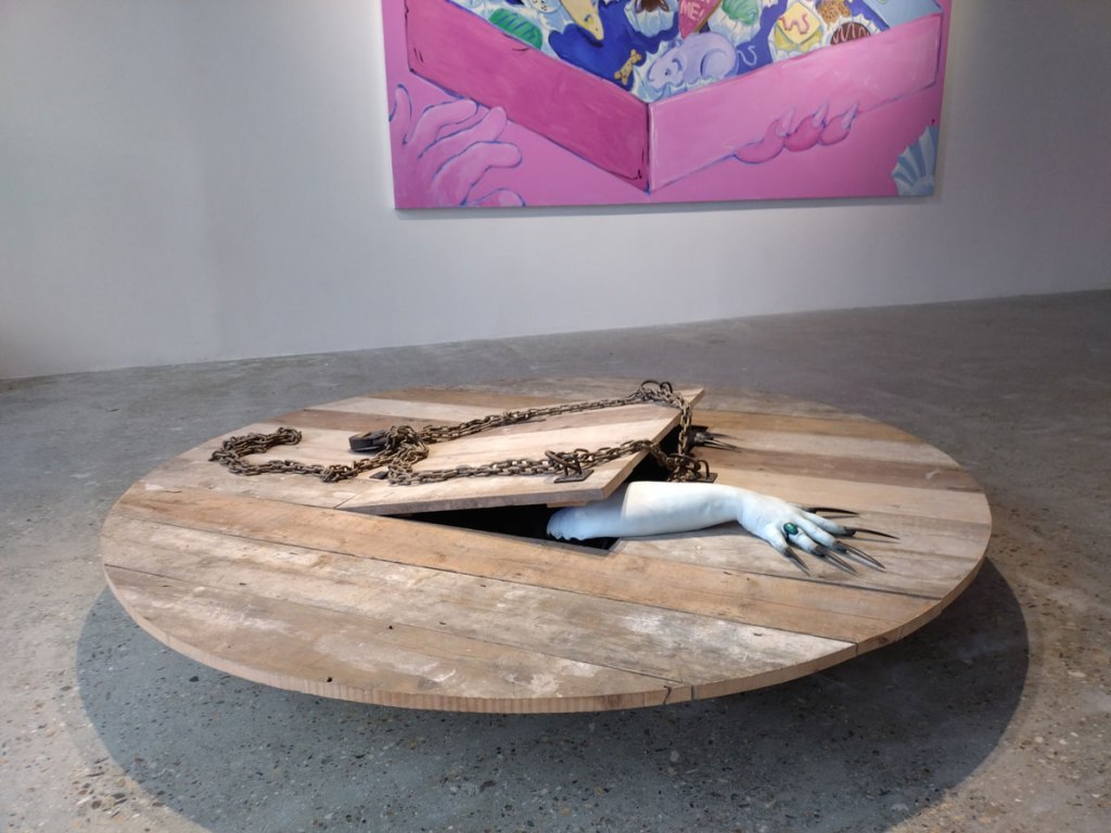 There are five strong (female) artists in this confident show, there are once again positive conversations quietly happening across the room, you are left wanting to know more about each of the artists, about the show, you do leave with your head full of questions, and at the same time you are left with the beauty, with the sometime uncomfortable beauty, the nature, as weith Working Girls back in the Summer, you are left with a whole bag full of positive emotion, the boldness of that paint, of DaddyBears once again, she’s a textile artist and sculptor based in London, of Anna Sampson, a London-based photographic artist who shoots and prints on film, of Darya Diamond, a Mexican-American artist working in print. Maite de Orbe, a London-based Spanish artist working in photography and film, mostly you left with a need to see more of AJ Bravo’s paint….