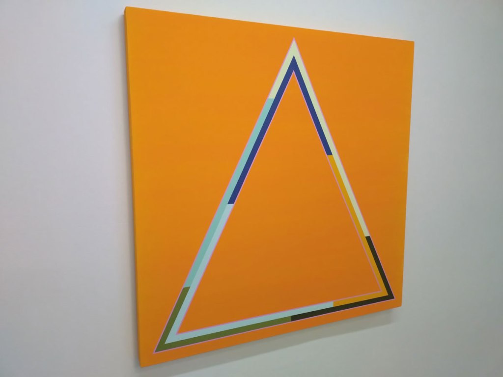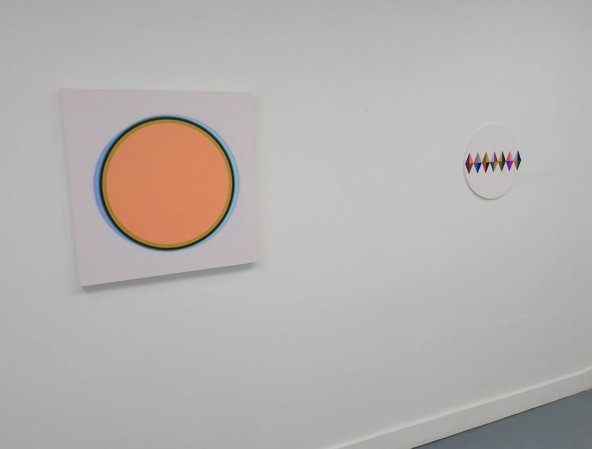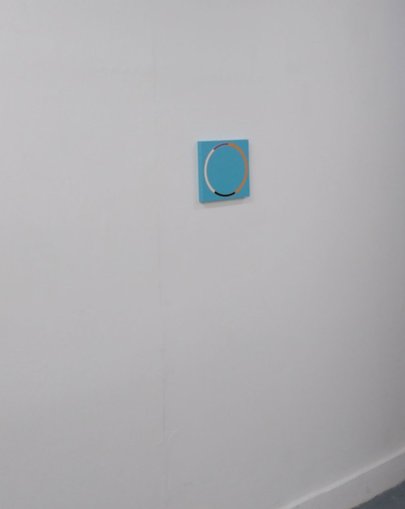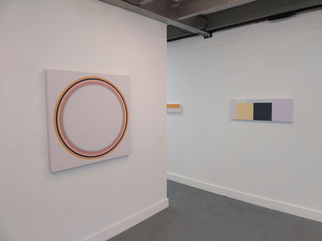 This is a beautiful show, beautiful use of colour, crisp, precise, almost graceful. Pieces and relationships that are warm rather than the cold thing geometrical painting can sometimes be, finely balanced, cohesive, it is so easy to get the colour wrong with these things, neither artist does. Circle, square, triangle, waves, crystal clear, not quite by the hour and off on tangent that couldn’t be resisted, these pieces are hard to resist. Beautifully precise, a satisfying aesthetic, an exhibition that really does do all the talking for itself and it really doesn’t need to do too much, it is just quietly there waiting and wanting to be enjoyed. It isn’t always obvious where one artist starts and the other ends, not sure that matters in terms of this particular show and this collection of work, there’s a positive chemistry here, a balance, the whole thing feels right.