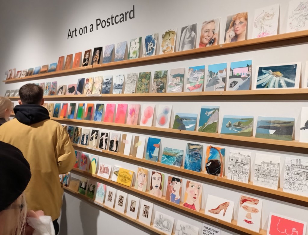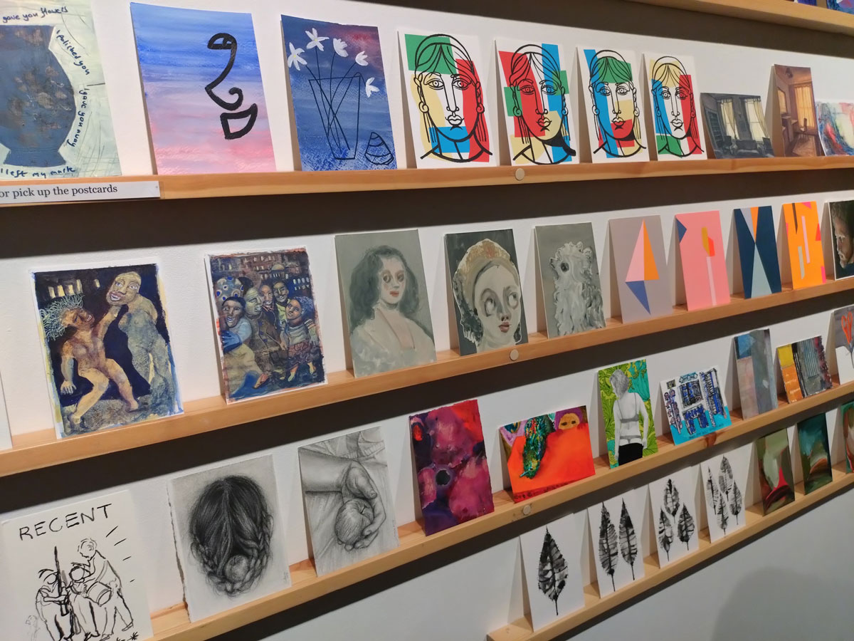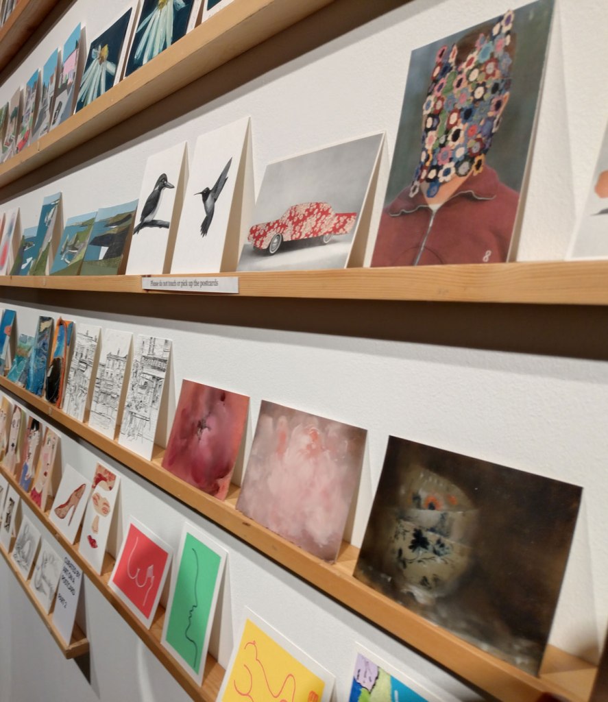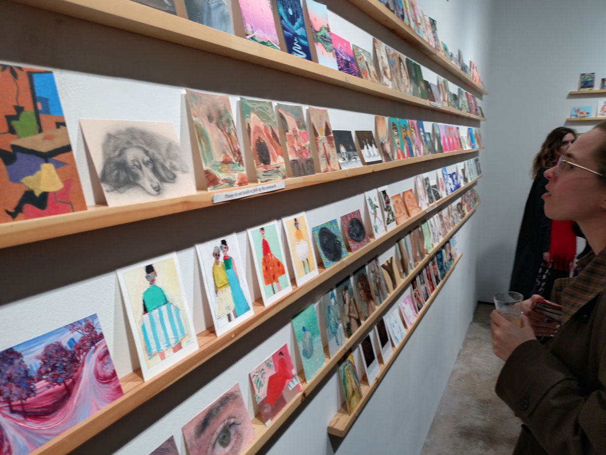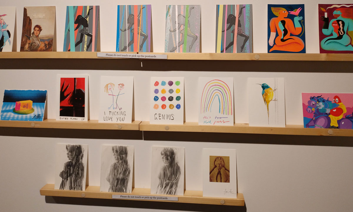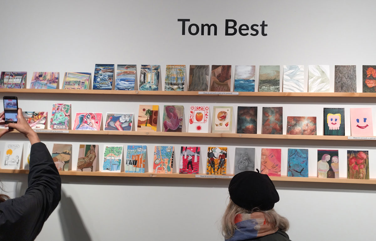 This is the biggest Art on a Postcard auction yet, I do hope they haven’t overstretched themselves, money is tight right now. You’ve got over six hundred pieces of art to explore, bidding is all via the Art on a Postcard website and well do go explore, some of the pieces will sell for silly prices, others will be waiting for just that one bid, there really is something for everyone there. One thing though, looking at art on a website is a little flat, these pieces are all at least ten times better when viewed in the flesh, they need to be seen in real life where the colour pops and the piece talk and the texture lives rather than in the dull of a lifeless website, mat I politely suggest some of the event photos here at the foot of this page might tell you a little more than just looking at the images on the actual auction site?