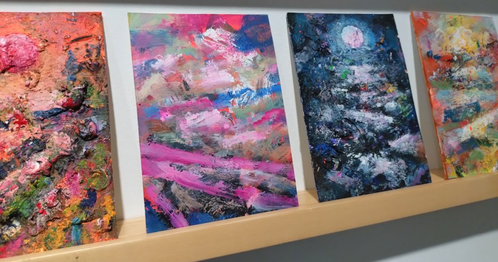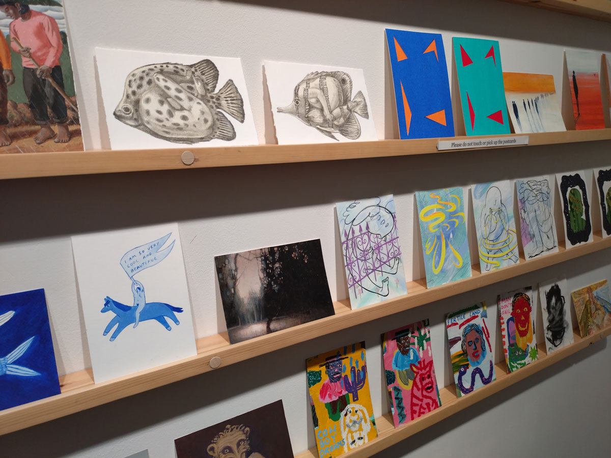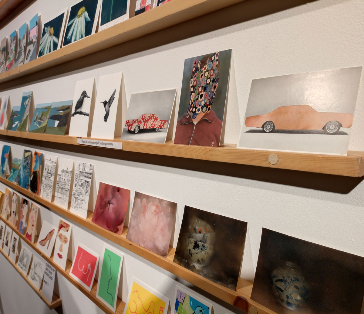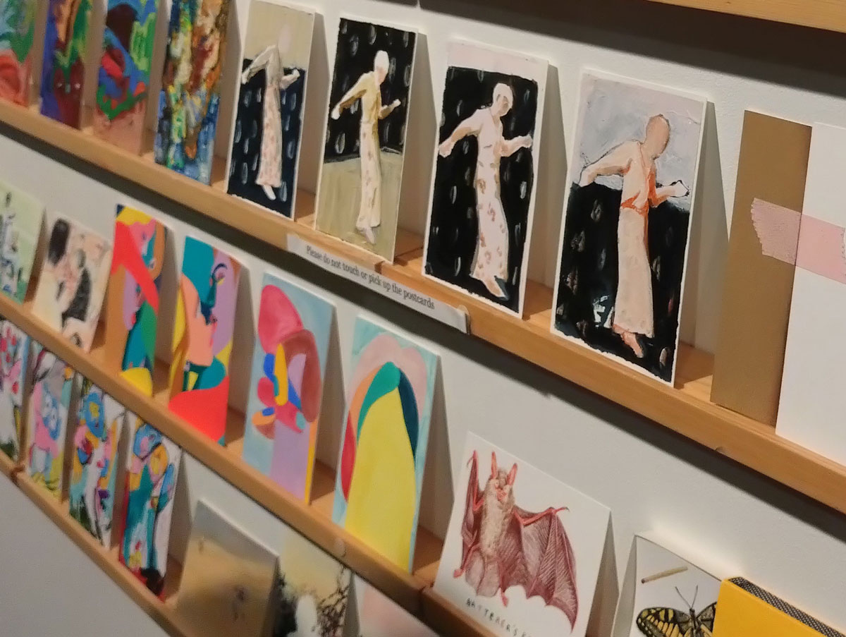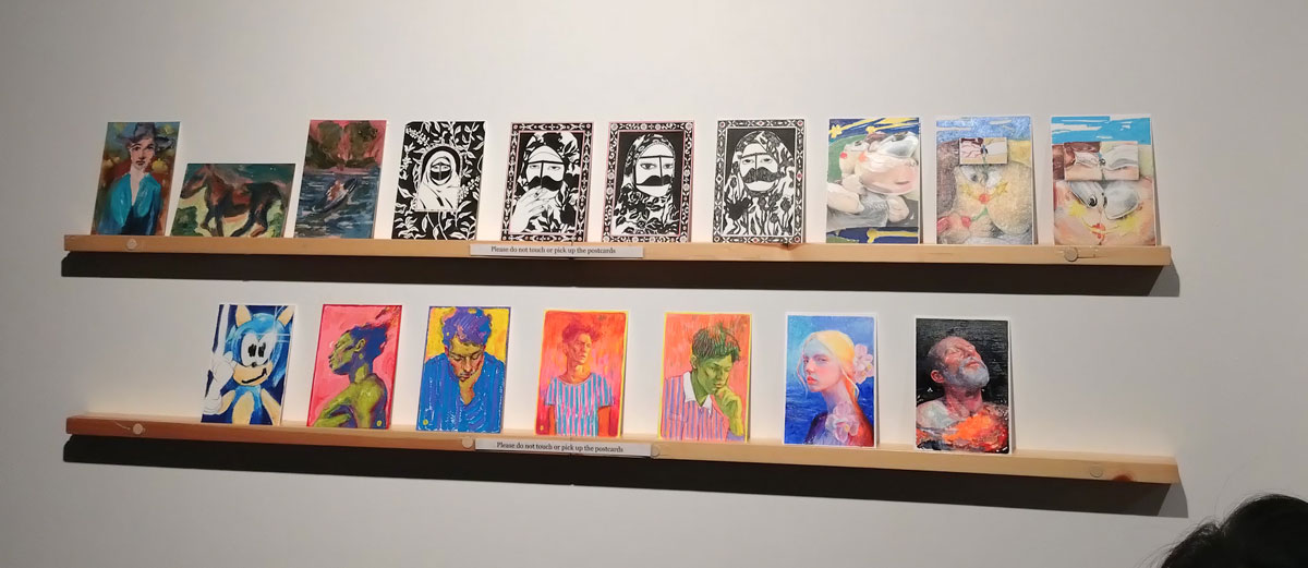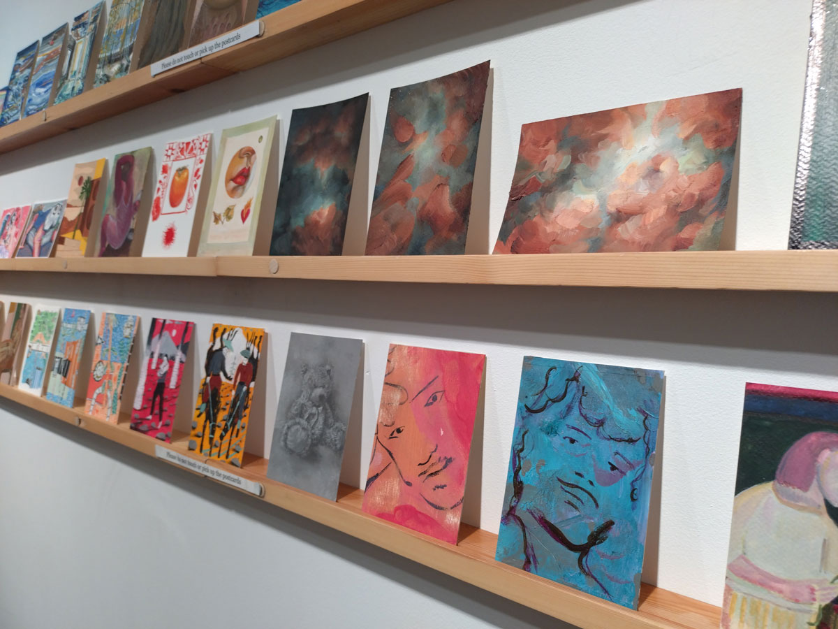 This is the biggest Art on a Postcard auction yet, I do hope they haven’t overstretched themselves, money is tight right now. You’ve got over six hundred pieces of art to explore, bidding is all via the Art on a Postcard website and well do go explore, some of the pieces will sell for silly prices, others will be waiting for just that one bid, there really is something for everyone there. One thing though, looking at art on a website is a little flat, these pieces are all at least ten times better when viewed in the flesh, they need to be seen in real life where the colour pops and the piece talk and the texture lives rather than in the dull of a lifeless website, mat I politely suggest some of the event photos here at the foot of this page might tell you a little more than just looking at the images on the actual auction site?
