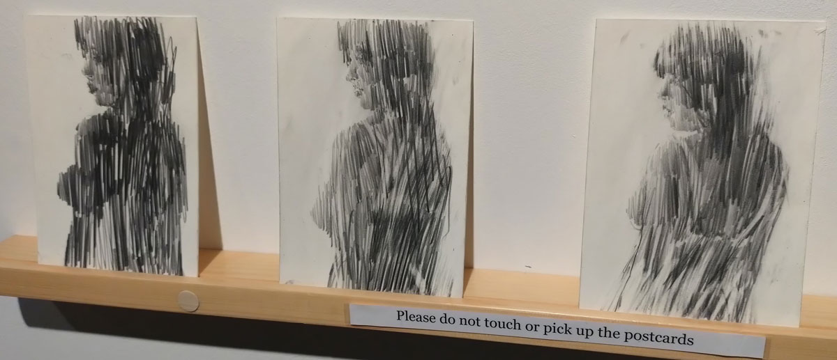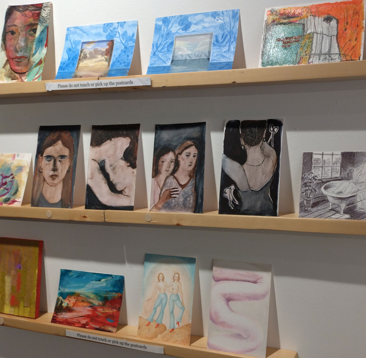 The gallery is packed tonight, you are having to use elbows quite a bit, get out of the way, if you need to chat don’t do it right in front of the art, I guess it is no bad thing that it is so busy in here, Art on a Postcard events do always feel like proper events, they are a big part of the London art calendar now and yes, when you do get to see the art then there really are some very very fine pieces in here, it is genuinely difficult to pick out favourites (we will do that later though, tomorrow, over the weekend maybe, come back later)