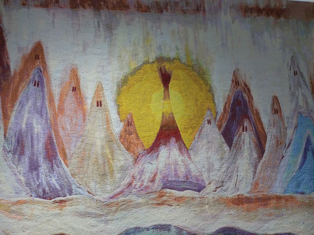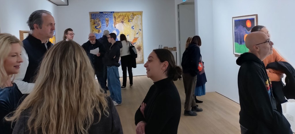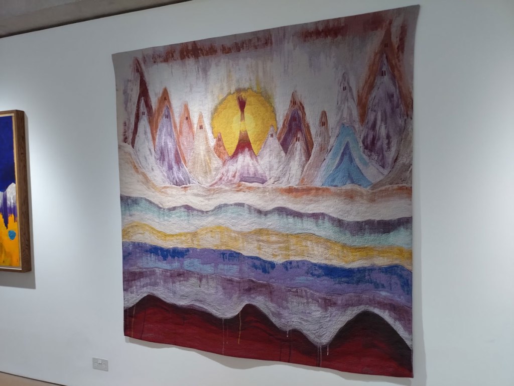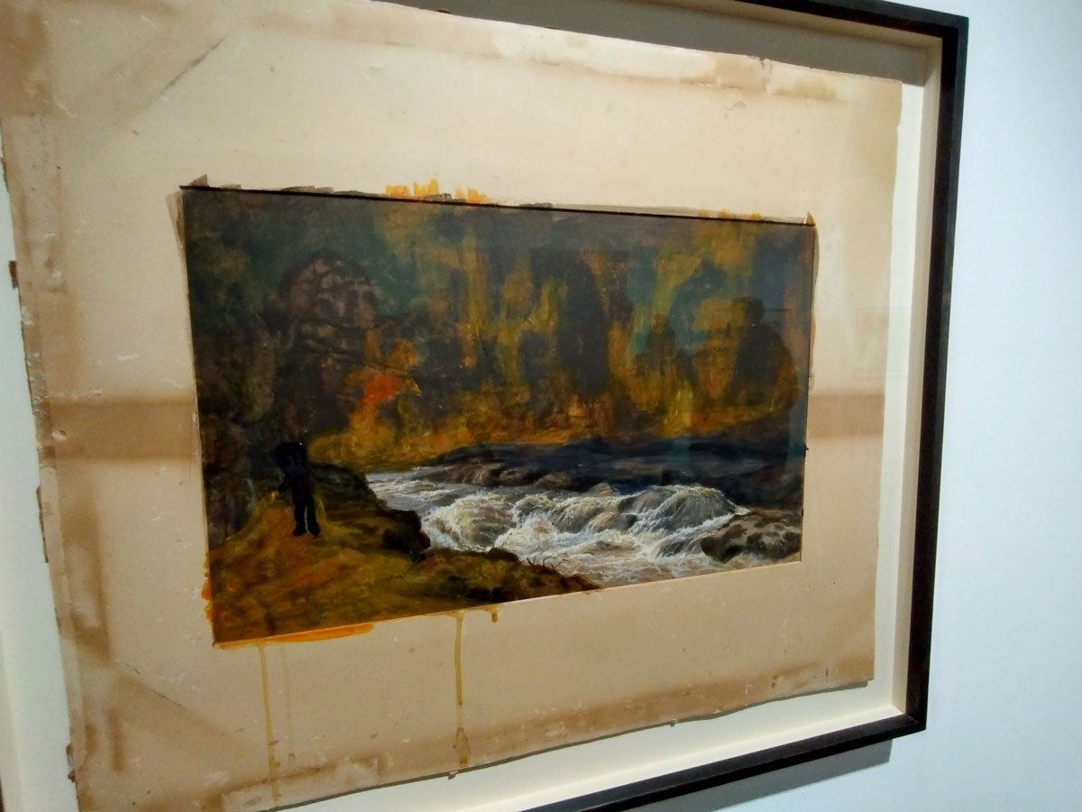 There’s some beautifully stylised Stanley Donwood prints on the walls, delicious pieces, while those collaborative tapestries certainly arouse curiosity, there’s something fascinating about them, about where they might me going, where the two of them might have been to come up with what can be read into them. You do wonder how responsive the collaborative pieces are, who reacted to who’s move, was it like writing a song, a tune, a dance? A logical absurdity? How synchronistic it was/is, I’ve always seen painting as a very personal almost lonely thing to be doing, a private thing until the time comes to (sometimes reluctantly) reveal. This is an intriguing show, there’s that word again, intriguing, an intriguing show for many reasons, an an intriguing show to read, in some ways a surprisingly strong show… (sw)