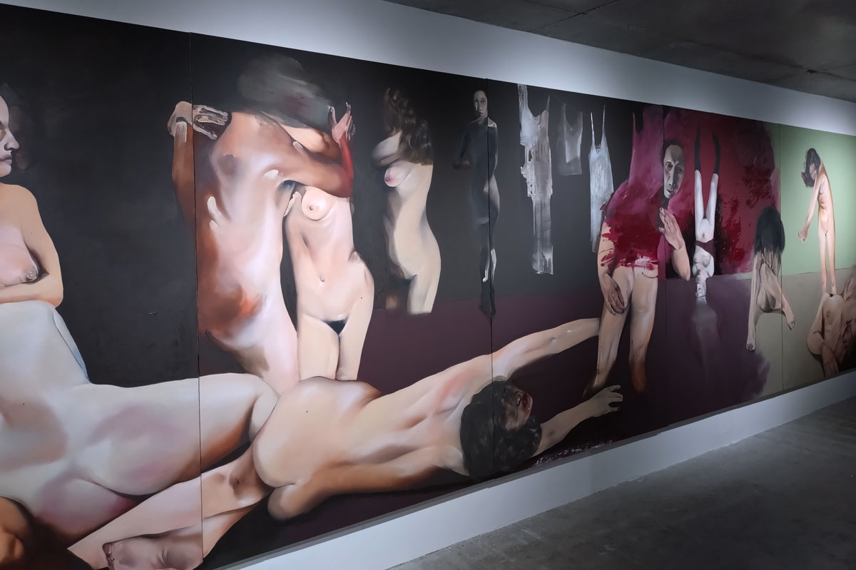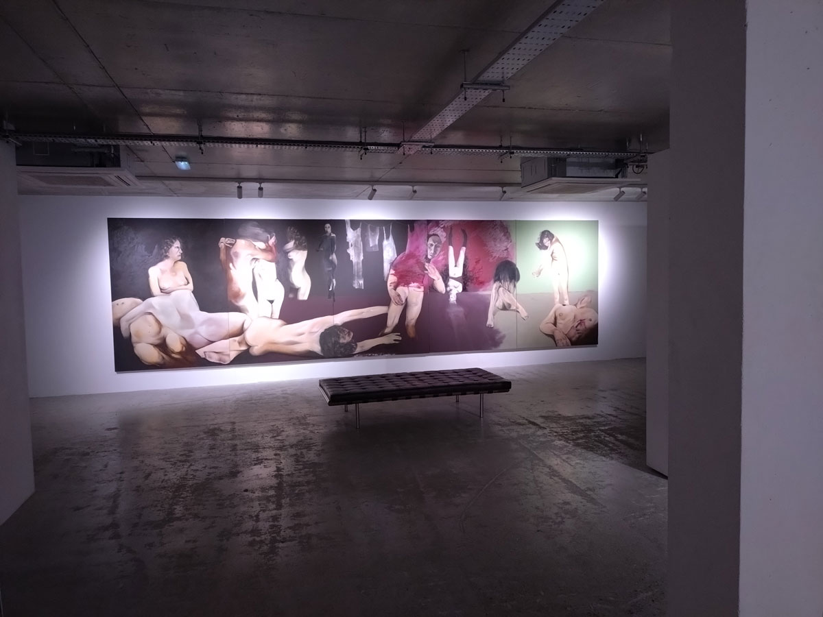 “A Screaming Object features Rouy’s largest and boldest work to date: a 7.5 metre long frieze made up of five large-scale canvases depicting one continuous scene. In this grand, imposing new work, Rouy continues to explore and navigate the unsettling boundary between hellish, visceral brutality and soft, tender beauty. The result is a complicated, transgressive and labyrinthine emotional landscape in which the repressed, troubling elements of the human subconscious are explored….”