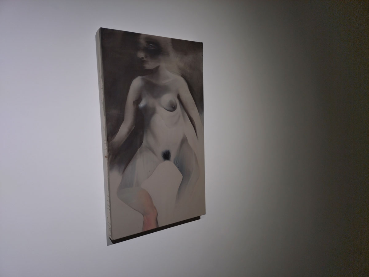 And yes, wow, and yes, got the place to myself, no one in here, excellent, although it does immediately feel kind of semi-voyeuristic, almost like you’re looking in on something private, that you really should not be there in the silence of the gallery just looking at it like this, in here stepping back from it, walking up to it, walking along it. Yes there is a tension, there is a sense of something rather charged in her almost ghostly figures, you do feel like you’ve walked in on something you shouldn’t have and the polite thing would be to quietly turn and walk the other way. Actually it feels that way with the three much small pieces that are also on the walls in here, there’s a smaller piece called Cutting Corners that is particularly charged.
