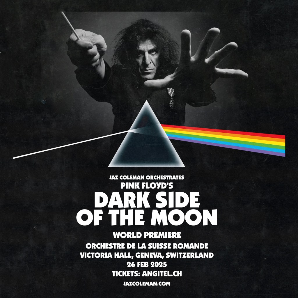 “I am incredibly excited about the performance of Dark Side of the Moon on the 26th February 2025 by the Orchestre de la Suisse Romande. As many people know, Geneva is a Killing Joke city (we wrote Eighties and much of Night Time there). When I scored Pink Floyd’s ‘Us and Them’ back in 1994, it was 70% Dark Side and 30% The Wall. For this special occasion, I will present the entire Dark Side of the Moon. I am grateful to the OSR and Antigel Festival for arranging this concert on the day Killing Joke started which just happens to be my 65th birthday!” – Jaz Coleman. More details. Jaz on Facebook