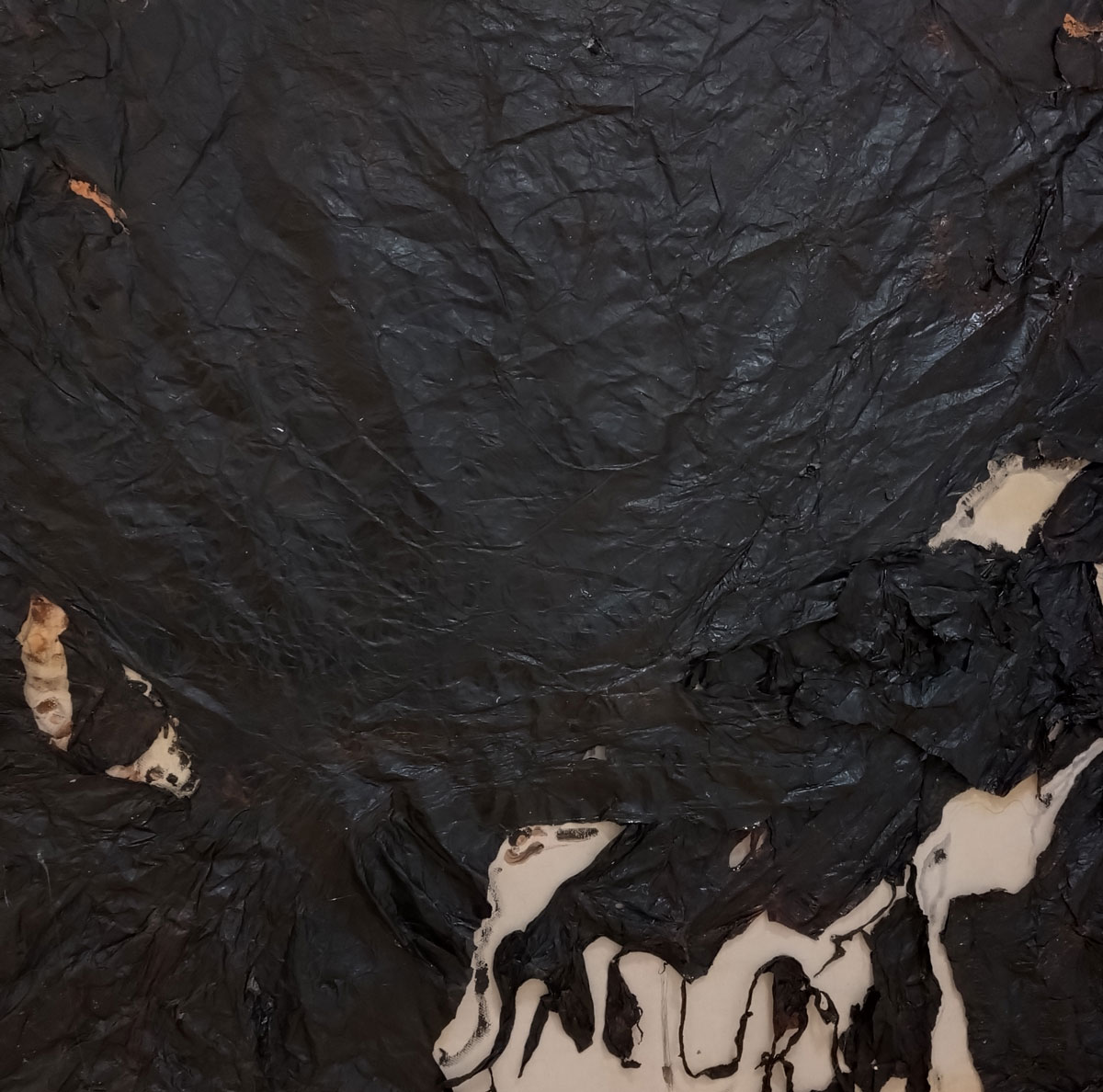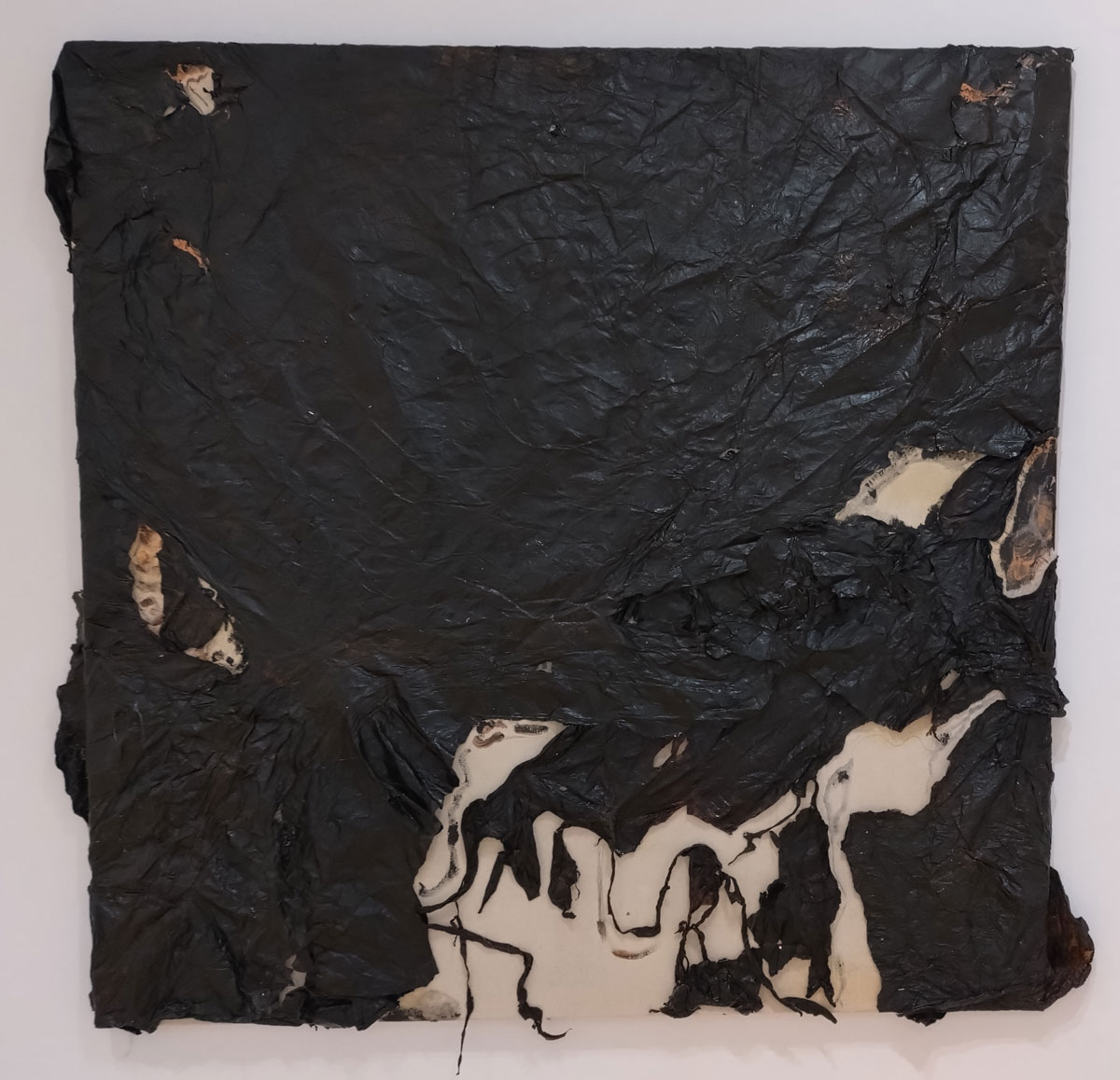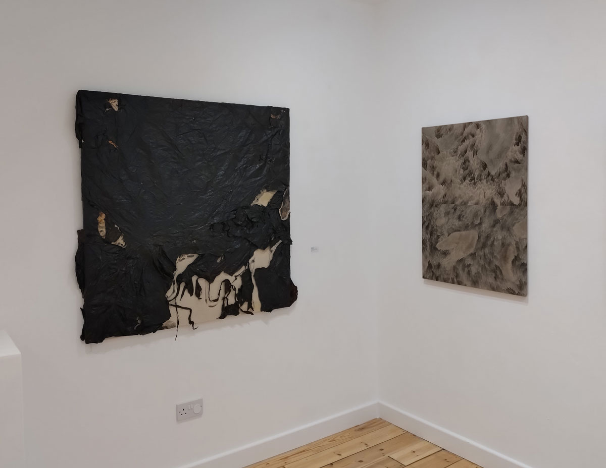 Stop Press: This just in from the gallery – “I thought you might like to know that the piece you particularly liked is called ‘Earth Skin’ and is made from Kombucha scoby (a bacterial colony), graphite and oil on canvas”.