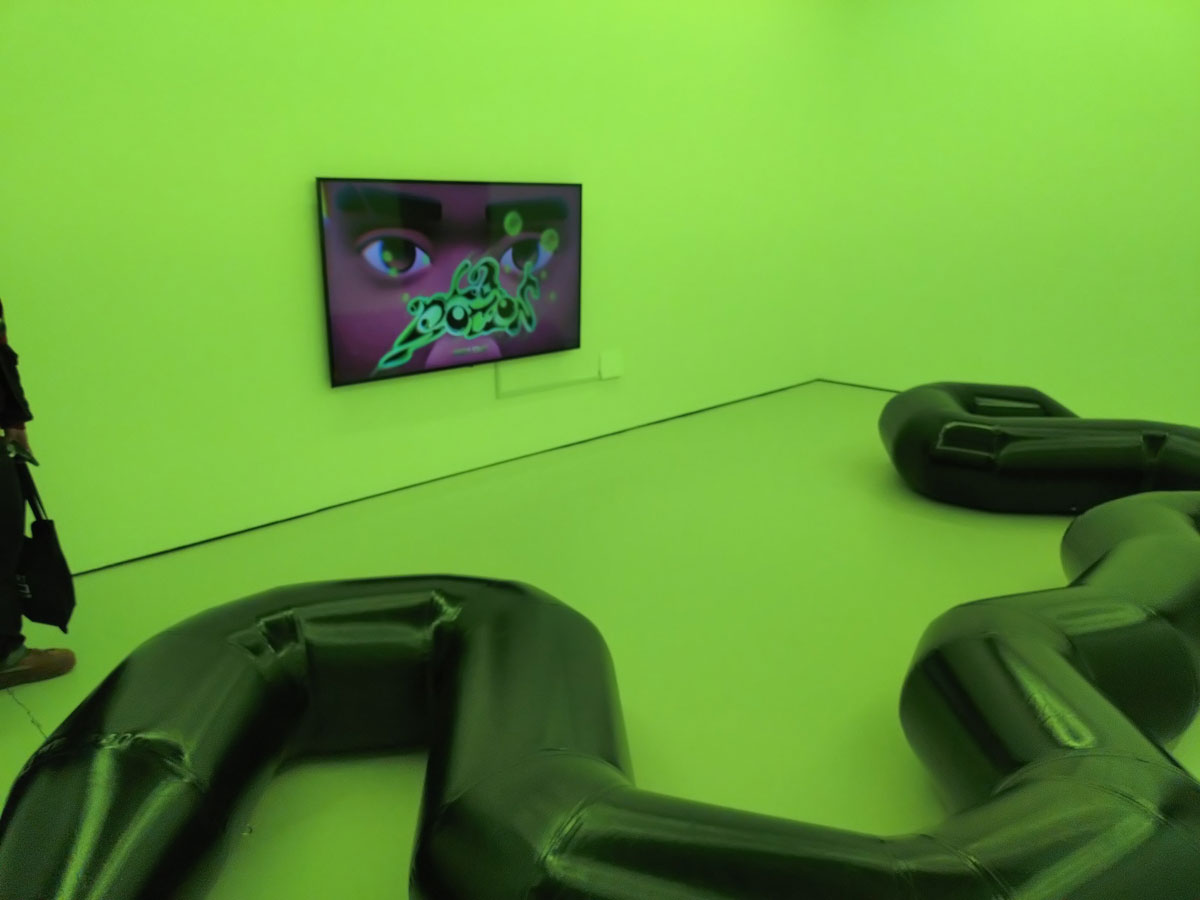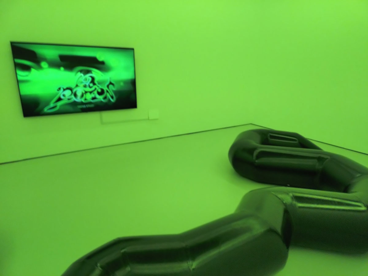 Sara Sadik, Annka Kultys Gallery, East London, January 2024 – Now before anything else, the gallery really wasn’t quite that green, it was more like a hint of green in the white of it all, just a green tinge in the air, this is Annka Kultys Gallery though and in the true spirit of the blurring of real life and the virtual reality and that place somewhere in between where the rather unique London gallery is at now, we’ll go with the strange green photographic “accident” that the combination of the lighting in the space and the effect said slightly green light had on a camera phone (it really was, in reality, nowhere near as green as the photos, there was just a hint of fresh green to the whitecubeness of it all). It really was that digital art thing in action, you’d almost suspect the gallery knew it was going to happen to people’s photos, and none of it was accident. I note the photos on the gallery’s own website are just as deliciously green as ours are, the line where reality starts and ends is way passed blurred now, you might say that is no bad thing?