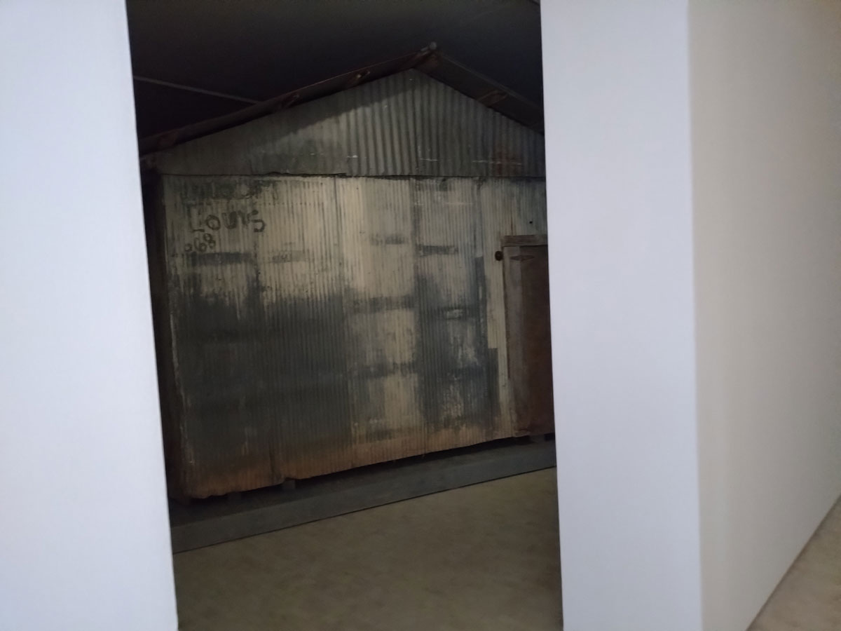 And even if you do know his work, even if you did have some kind of idea, once you’ve got past the closet, turning the corner it the very big back room is still a gasp, it is still powerful, it does take your breath, although does it quite so much if you aren’t already a regular visitor to the space? I mean if you don’t know how big that back room is as you walk into the almost pitch blackness of it all? This is really addressing the gallery, although that might now have been the point? And what actually awaits in here? Do we walk into the space? The darkness? What is this? A giant, and I really do mean giant, a giant shed in the darkness that you just have to head into, but what happens when you do?