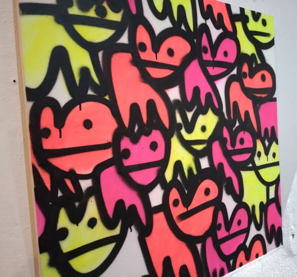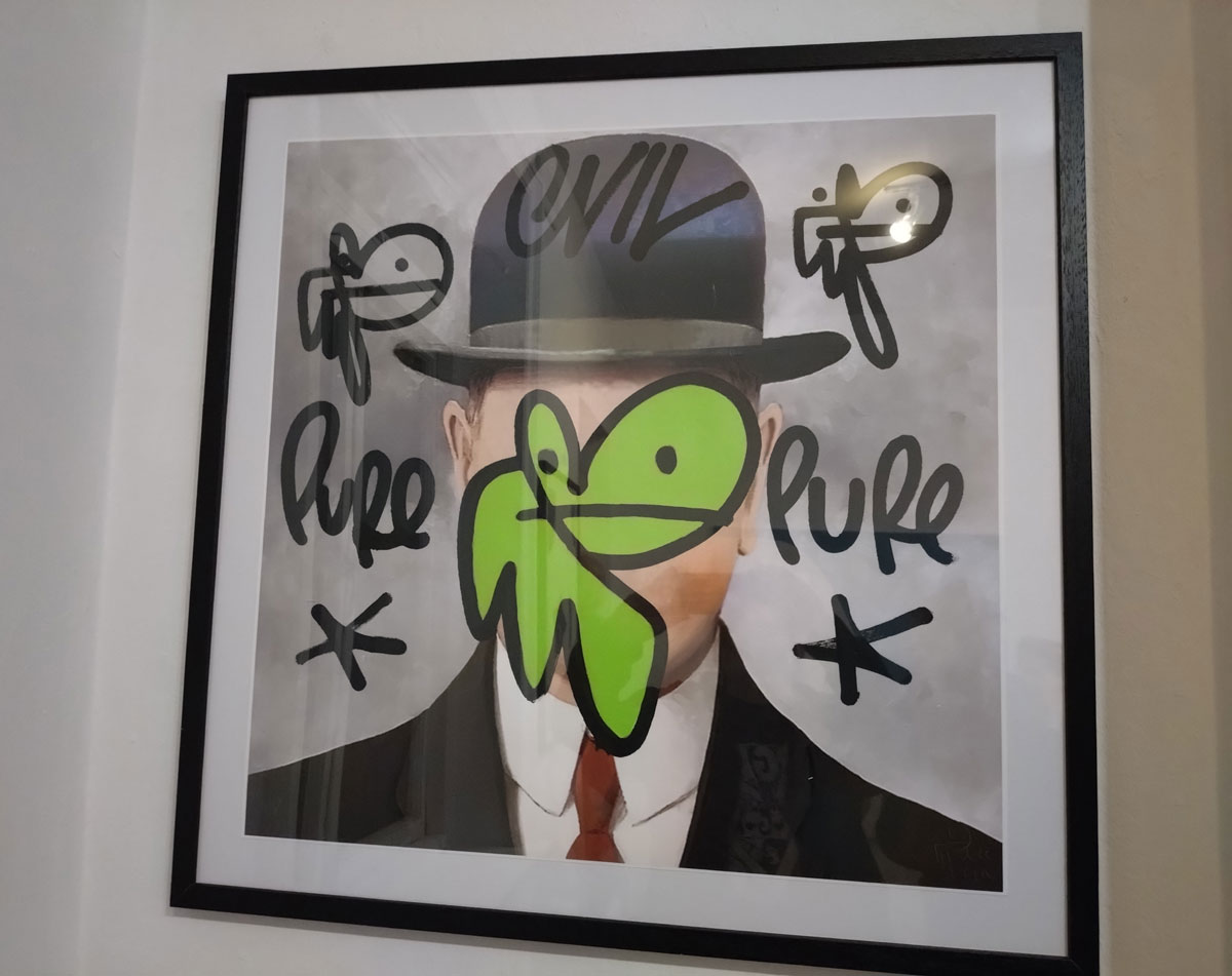 Pure Evil at Bunny Contemporary, East London, February 2025 – Did kind of hope the first solo show at the reborn rebranded space now known as Bunny Contemporary would be something other than a Pure Evil show – I almost said something more than just a Pure Evil show then but that would be wrong and don’t get the wrong end of the stick here, two wrongs don’t make a right, I like Pure Evil, I like his pop art, his repeating of a theme, the almost fuck-off-ness and the smile on his face that comes with it all. But this is his place, it has been the Pure Evil Gallery for years and years, if you’re going to rebrand and relaunch, then maybe following the couple of group shows that you already heavily featured in to kick off the rebranding, to follow those group shows with your own solo show maybe isn’t the most exciting statement to make? Dare it be said it say it feels all kind of same old same old at a time when East London’s Urban Art leaning galleries and the whole so-called urban art scene feels a little tired and treading a bit of stagnant water. Do like that the space is getting a bit of a much needed kick up the arse though, it was needed and hopefully were going to see an evolving programme of exciting exhibitions, events and artists when the Spring finally decides to show up and the year finally unfolds. There’s been some good shows in Pure Evil’s spaces over the last fifteen years or more – those minibus rides to that first big show by Mad C, the always interesting Marina Fages, that really good Gustavo Ortiz show back in May 2014 and that very painterly Cosmo Sarson exhibition in 2015 was particular good (although once again the East London gallery has never really taken a massive amount of interest in East London’s own artists, something that’s about par for the course around these parts).
