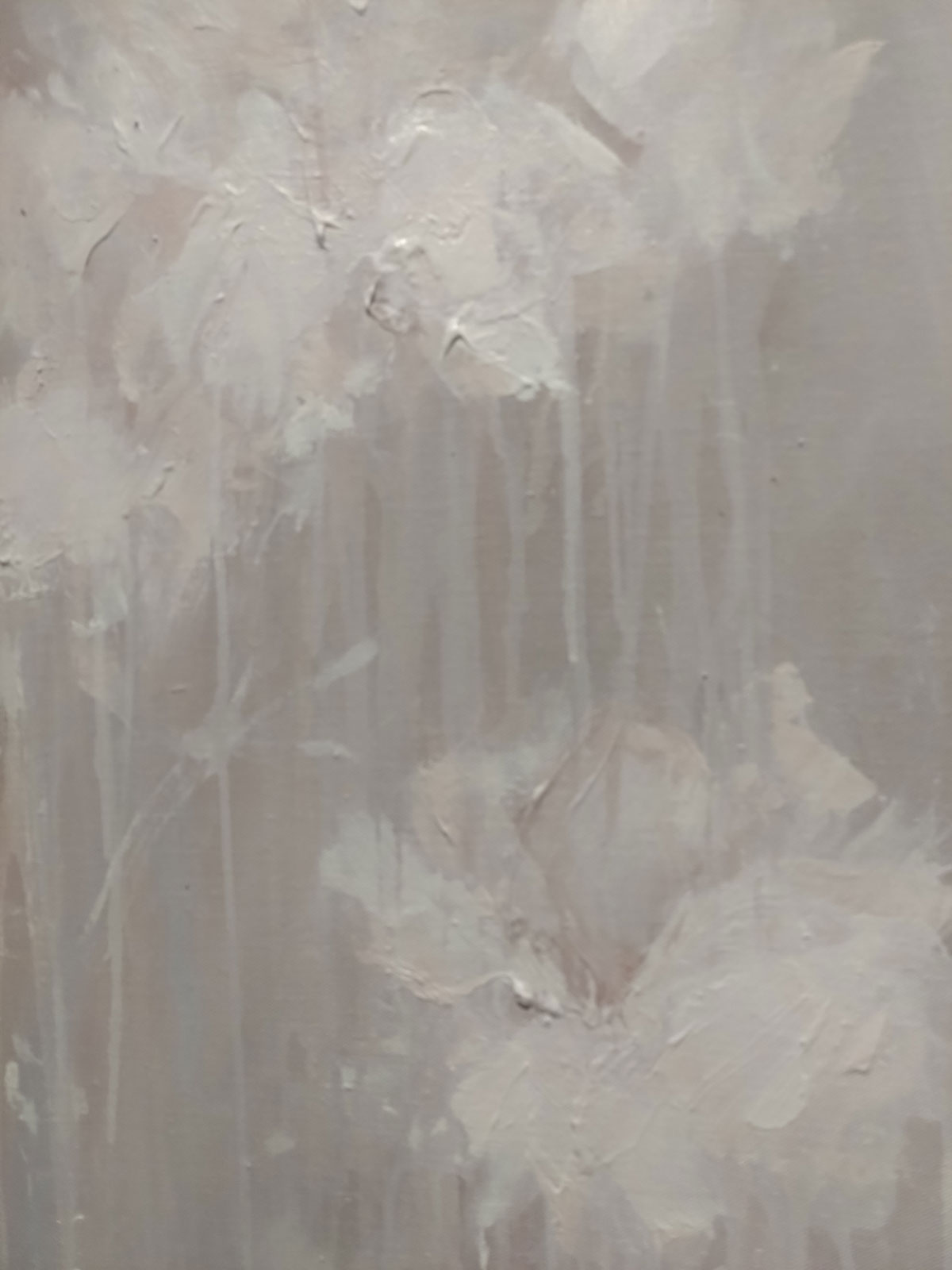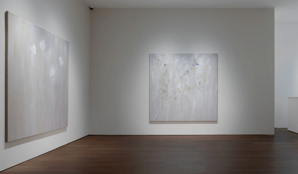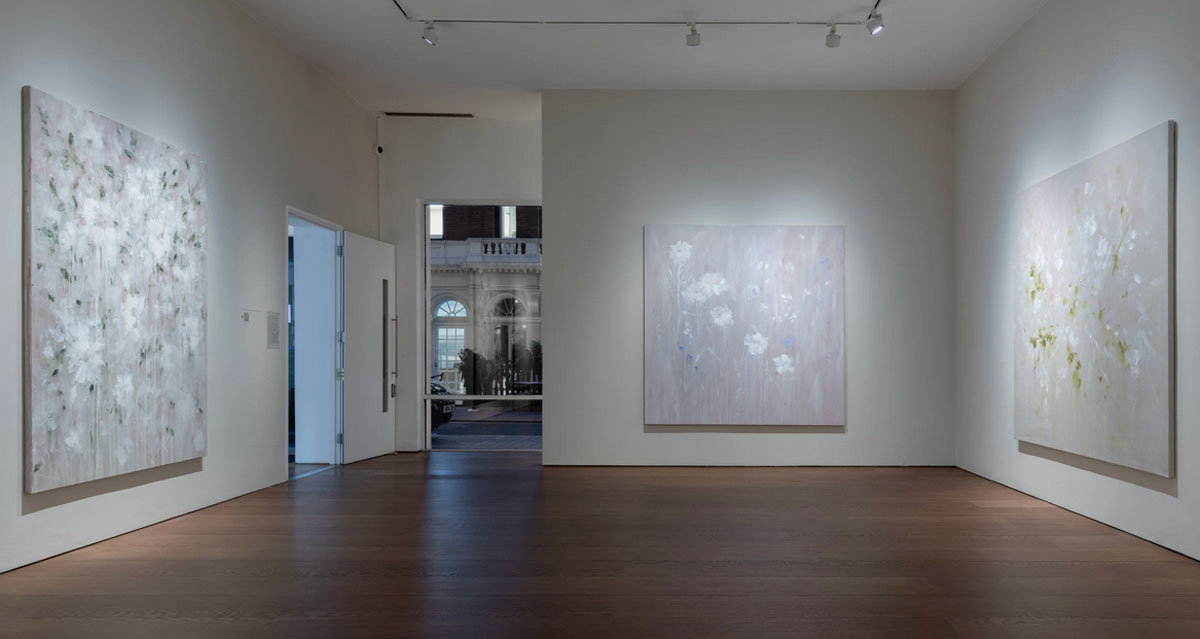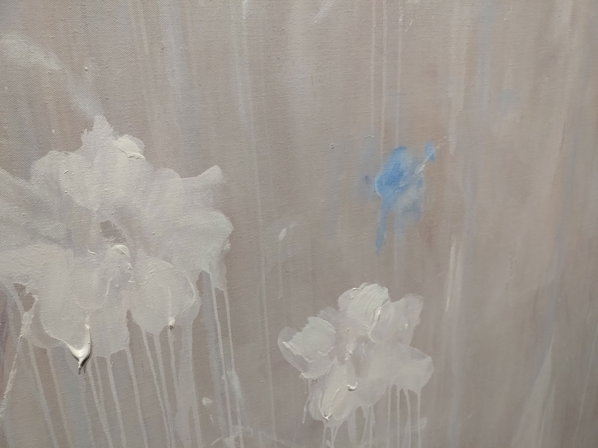 Bianca Raffaella, Faint Memories at Flowers, Cork Street, London, February 2025 – Now I almost opened by saying (or writing) “look” at the start of the sentence in the forthright way people do when a point needs to be made, and yes, it all about looking. As Peter Prendergast shouts from inside my head pretty much every single day of my life, “art is ninety percent looking and ten percent doing”, it is pretty much all about looking. “You’re not looking!” Peter would yell but we’re not really sure what painter Bianca Raffaella is actually looking at or at least what she she can see, although maybe we are? Surely she has it there, right there on these beautifully big canvases that make up her debut major solo show here in Cork Street at Flowers, the faded flowers on these beautifully big canvases, that’s what she sees. It is all about us being here looking at what she (intensely) looks at and sees. We all see things in different ways, all us painters, artists, viewers, I wanted to say look, Bianca Raffaella is essentially just another painter intensely looking and trying to tell everyone what she sees, it is what we’re all trying to do. Bianca Raffaella does it so well.