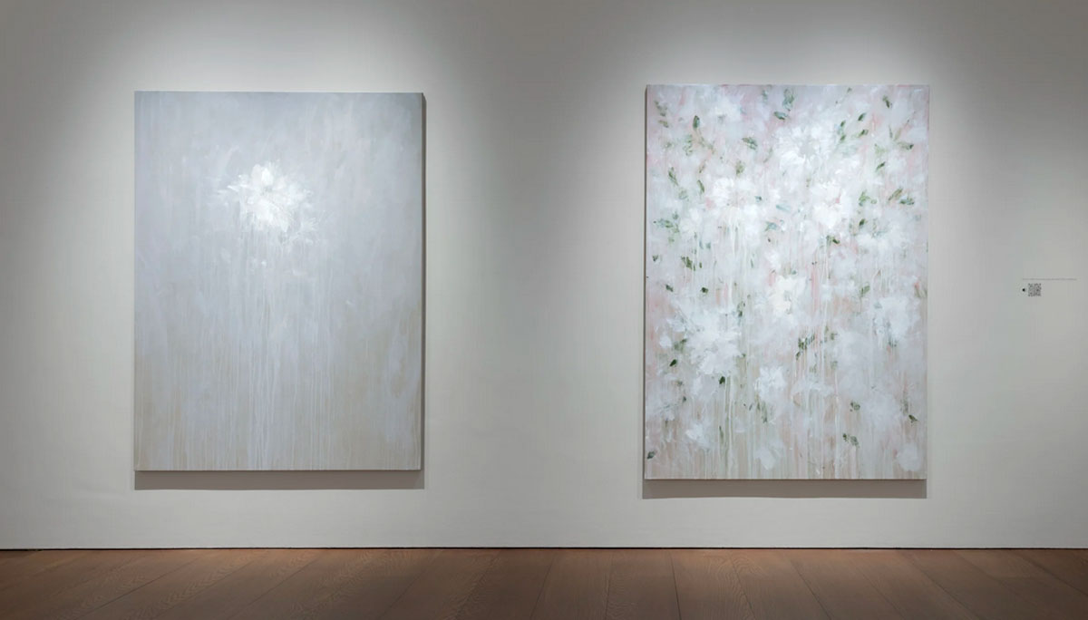 “Flowers Gallery is pleased to announce its representation of Margate-based artist Bianca Raffaella and the upcoming debut of her first major solo exhibition, Faint Memories, from 12th February until 15th March 2025. A recent graduate of the Tracey Emin Artist Residency (TEAR), Bianca Raffaella creates evocative paintings, working from memory and sensory cues rather than direct observation. As a partially sighted artist, her ephemeral and floral paintings draw viewers into her world by capturing fleeting moments suspended in “persistent vision”, where her sight is in constant motion, and images appear only briefly as faint shadows or flickers of light. Faint Memories features a collection of textural flower paintings that evoke the artist’s experience of beauty in braille, which was how she first learned to read and write. Raffaella relies on touch in her painting process. Never losing contact with the canvas, she blends delicate hues of blue, beige, and dusty pink until they become an ethereal impression, cloudy details made with fingertips, brushstrokes or scrapes of a palette knife”.