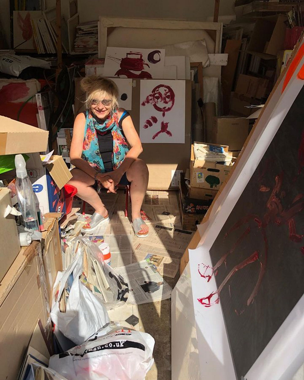 The size of the paintings or indeed the medium isn’t important here, we are looking at the work in digital form via a monitor that dictates the size of the image. Madeleine paints in acrylic, oil, with household gloss and more, her work is on large canvas, small canvas, paper, newspaper and more